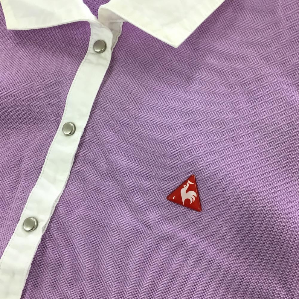 【美品】ルコック 長袖ポロシャツ ライトパープル×白 スナップボタン レディース M ゴルフウェア le coq sportif