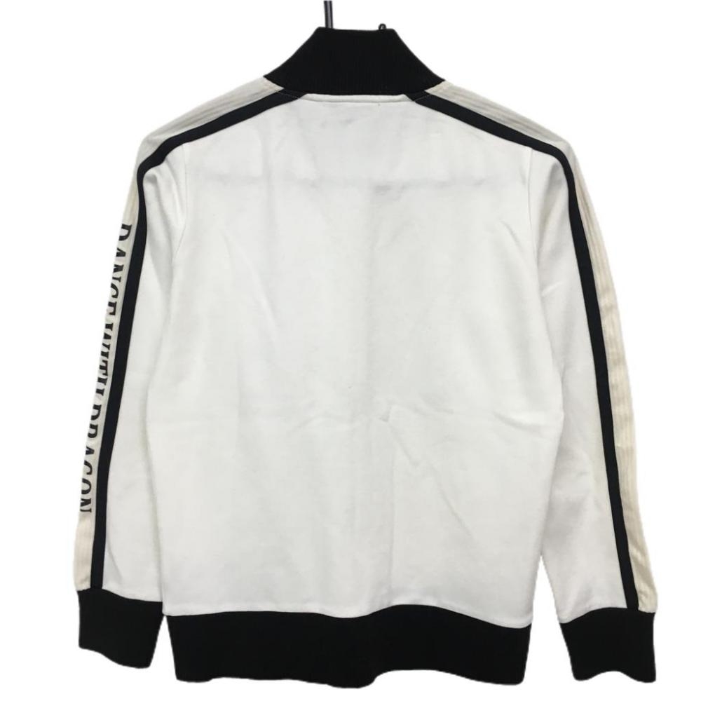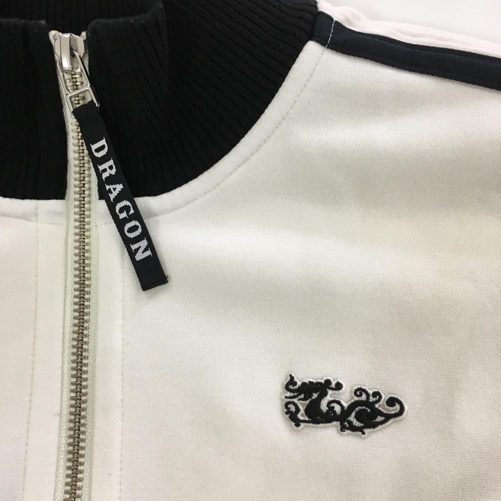 ダンスウィズドラゴン ジャケットブルゾン 白×黒 袖一部コーデュロイ×ロゴ レディース 2(M) ゴルフウェア Dance With Dragon