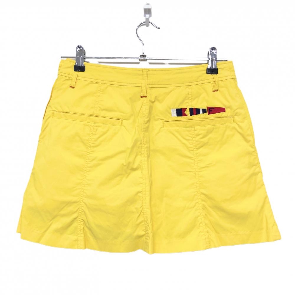 【美品】ルコック スカート イエロー フラッグ刺しゅう 内側インナーパンツ レディース 7 ゴルフウェア le coq sportif