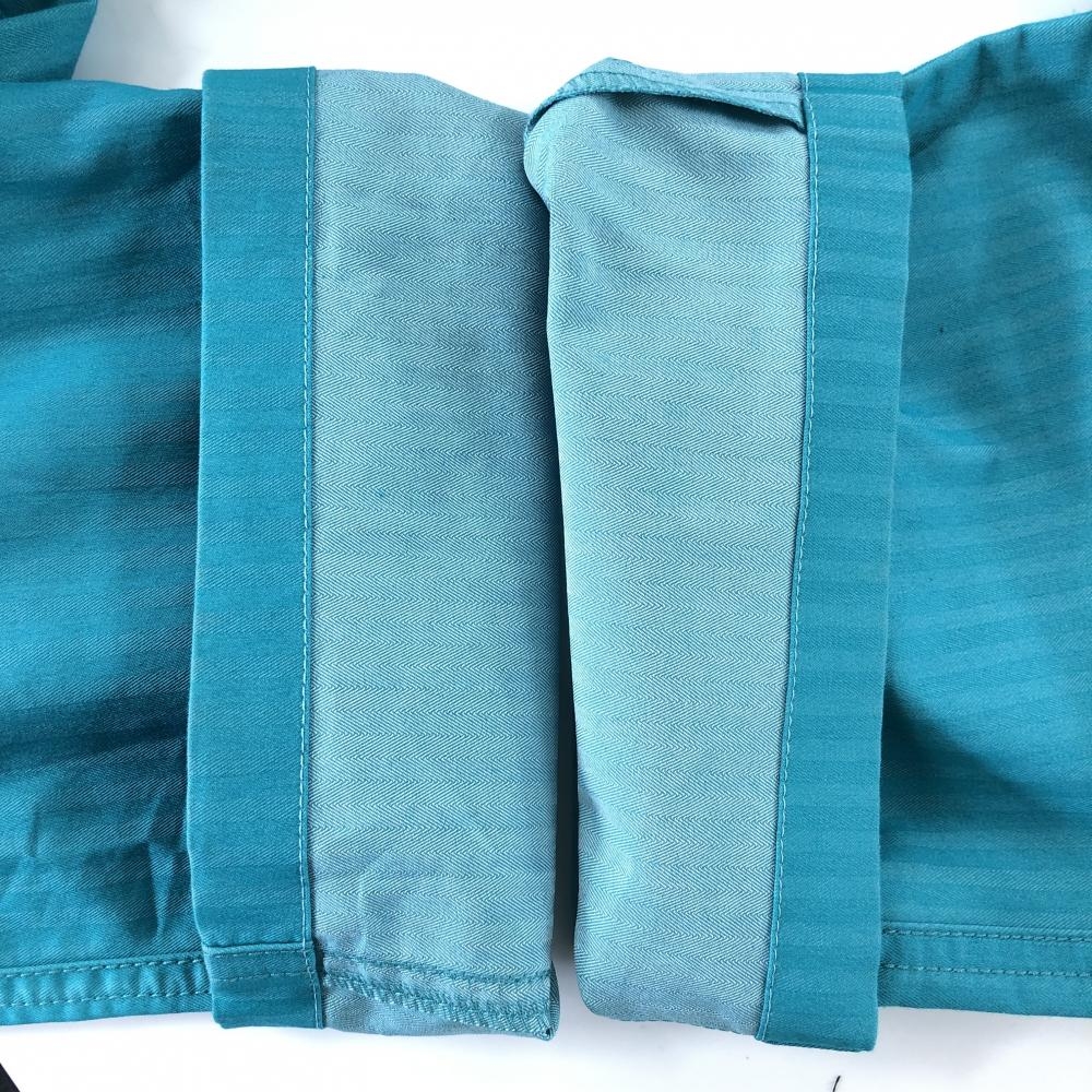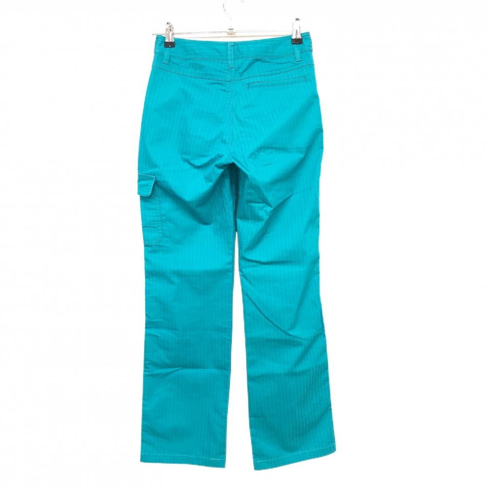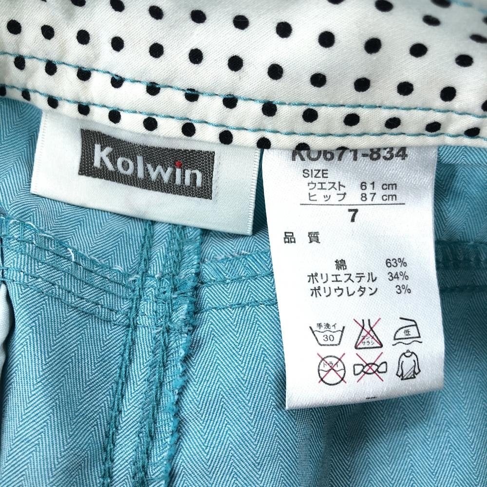 【美品】コルウィン パンツ ライトブルー ストライプ織生地 ストレッチ レディース 7 ゴルフウェア Kolwin
