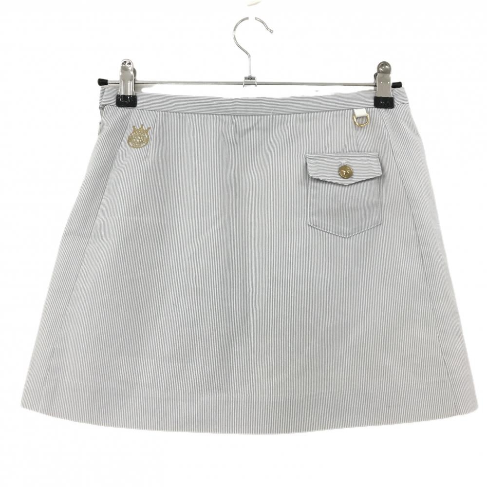 ビームスゴルフ スカート 白×ライトグレー ストライプ 裏地付き レディース S ゴルフウェア BEAMS GOLF