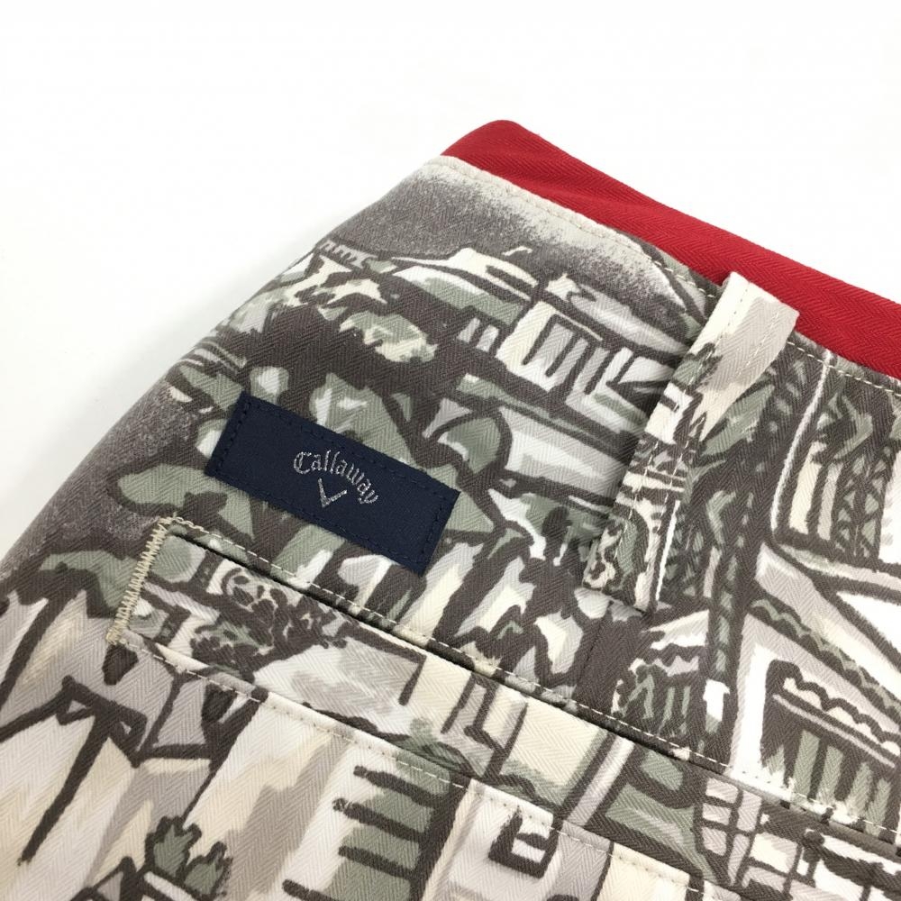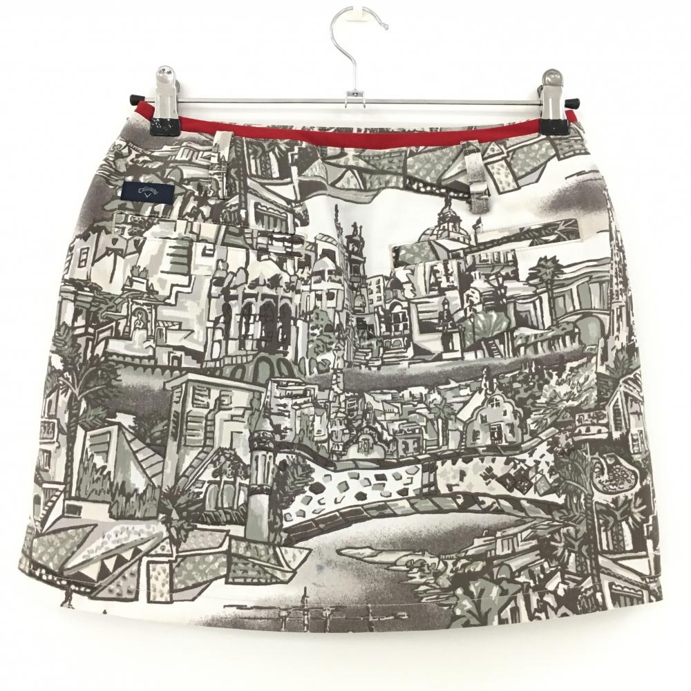 【美品】キャロウェイ スカート 白×ダークブラウン 街並総柄 内側インナーパンツ レディース SS ゴルフウェア Callaway