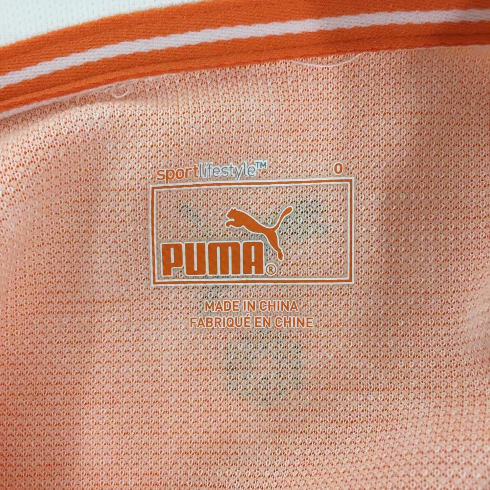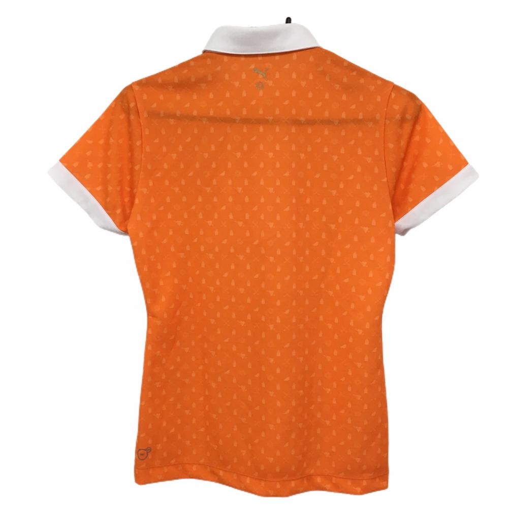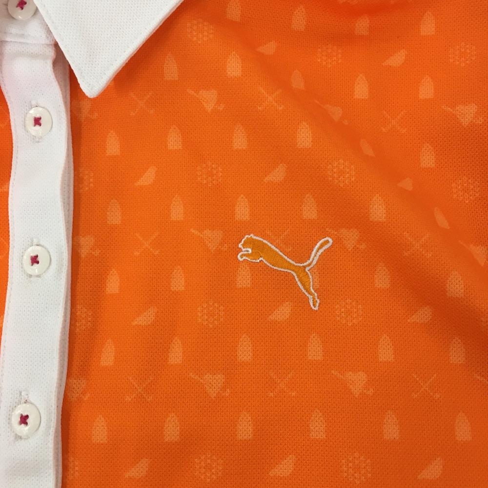 【美品】プーマ 半袖ポロシャツ オレンジ×白 総柄 刺しゅう レディース O ゴルフウェア PUMA