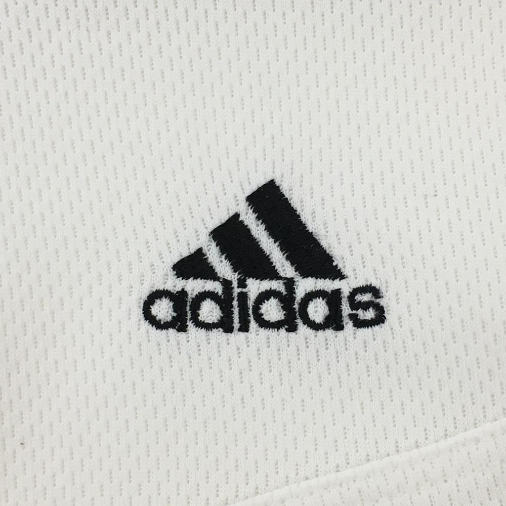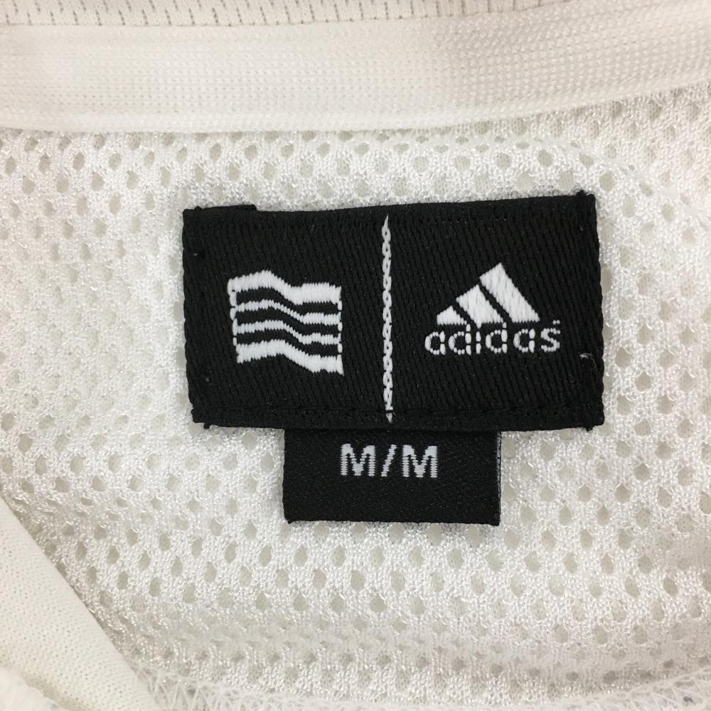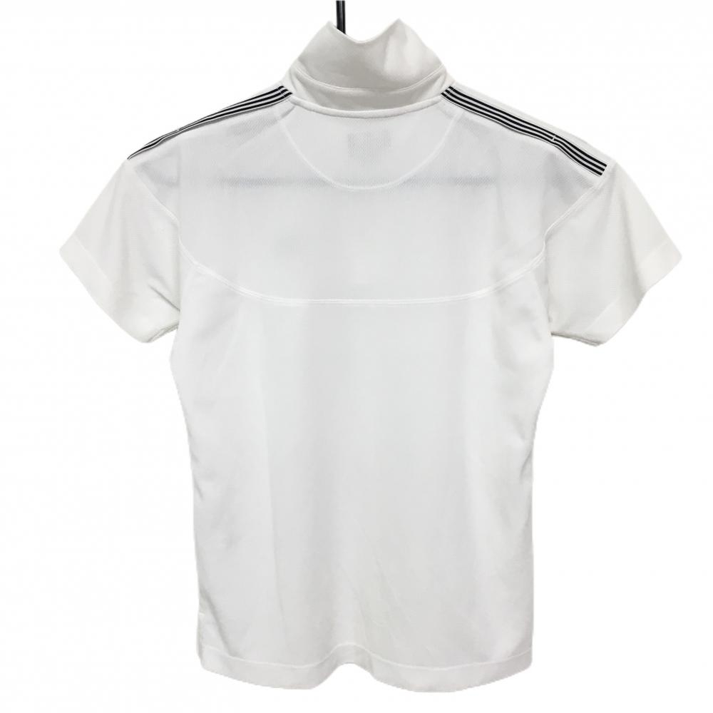 【美品】アディダス 半袖ハイネックシャツ 白 織生地 ハーフジップ ロゴ刺しゅう レディース M/M ゴルフウェア adidas
