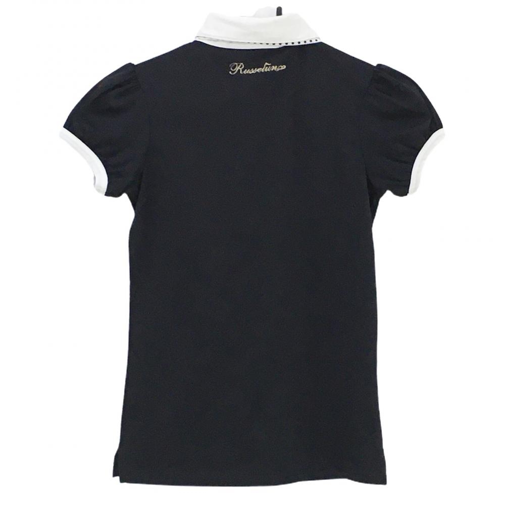 ラッセルノ 半袖ポロシャツ 黒×白 胸ワッペン ドットネクタイ レディース 0(S) ゴルフウェア RUSSELUNO