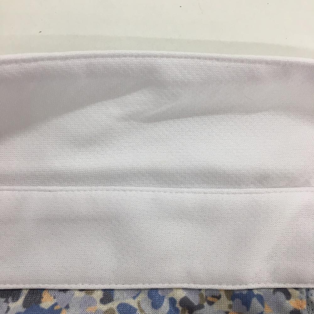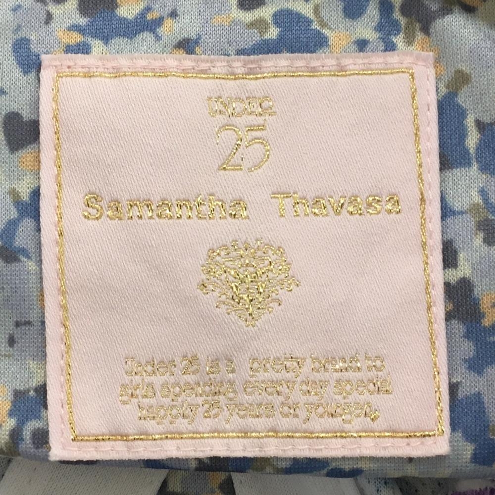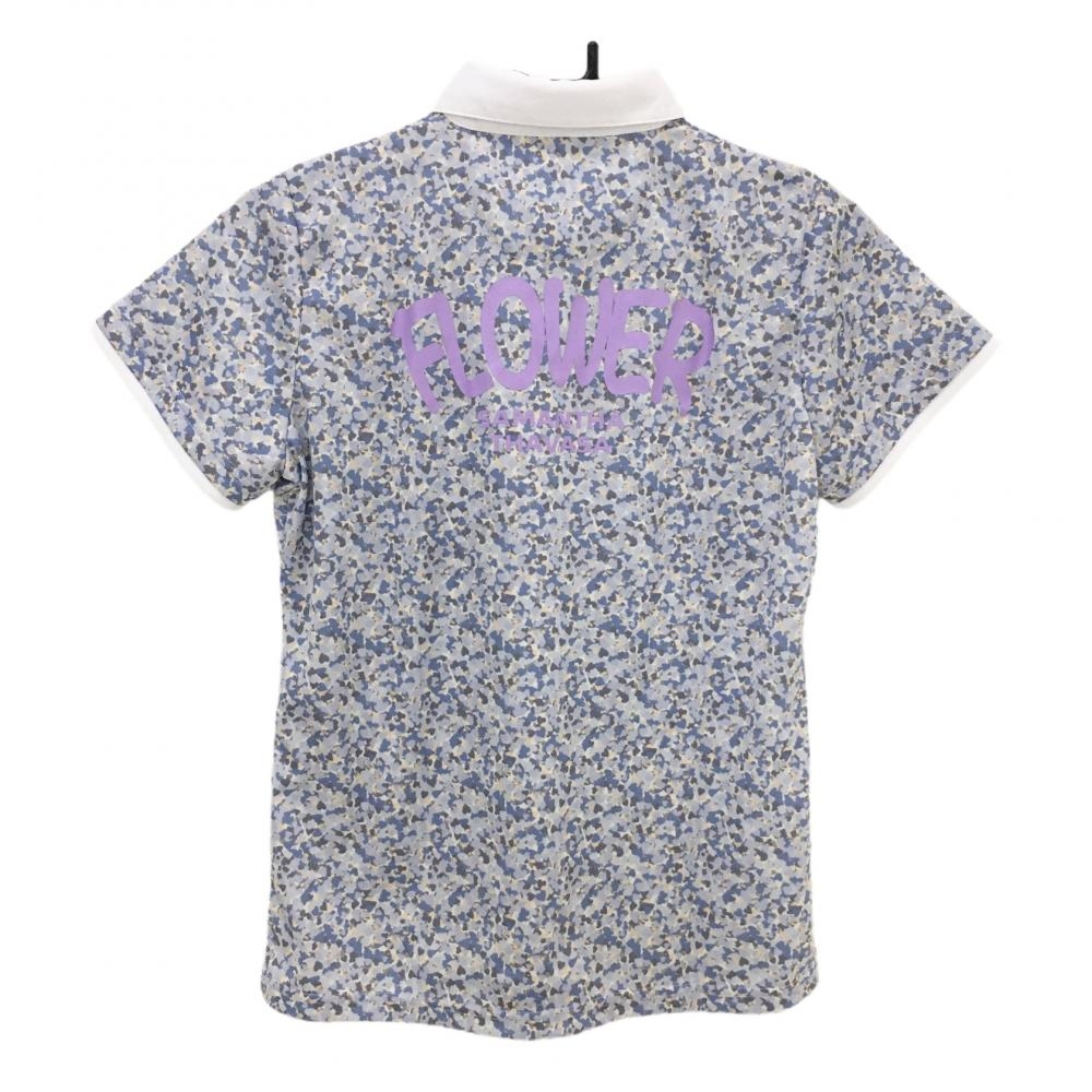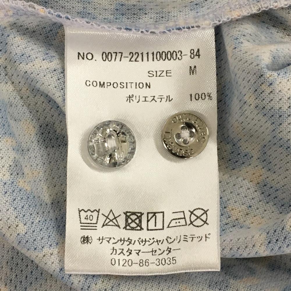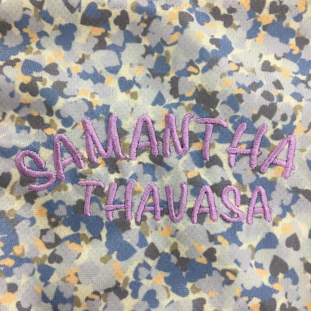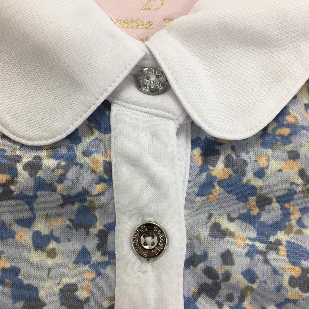 【美品】サマンサタバサ UNDER25 半袖ポロシャツ ライトグレー×ブルー 総柄 バックプリント レディース M ゴルフウェア Samantha Thavasa