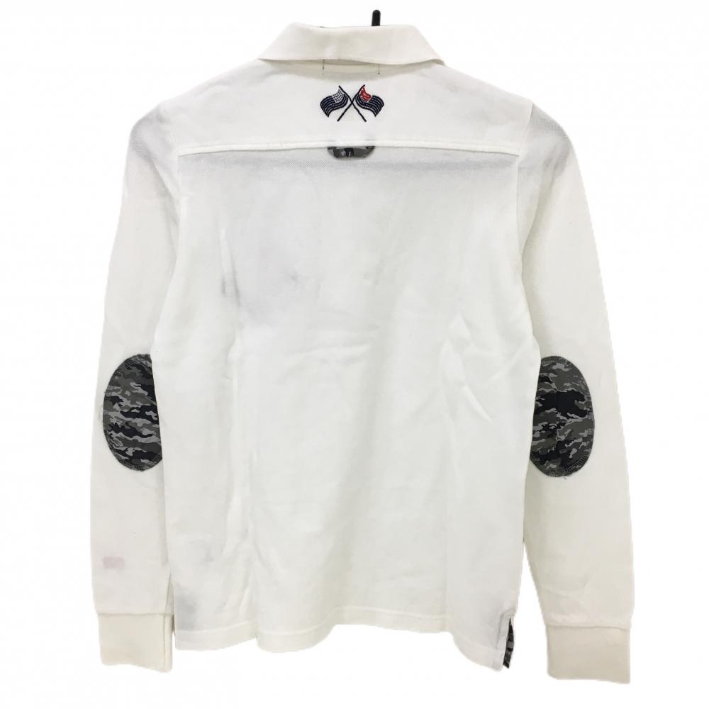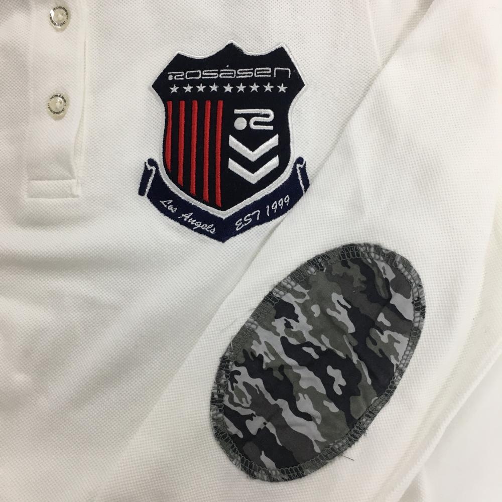 【超美品】ロサーセン 長袖ポロシャツ 白 ワッペンネイビー レディース M ゴルフウェア Rosasen