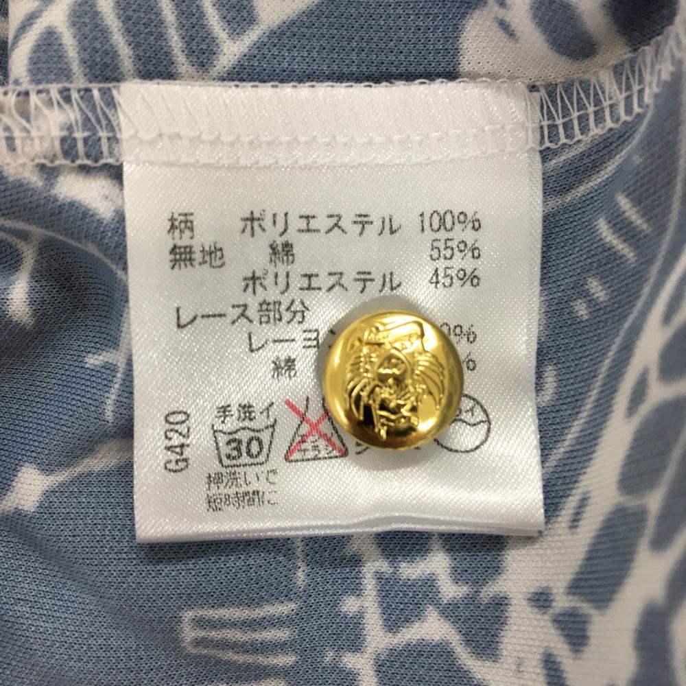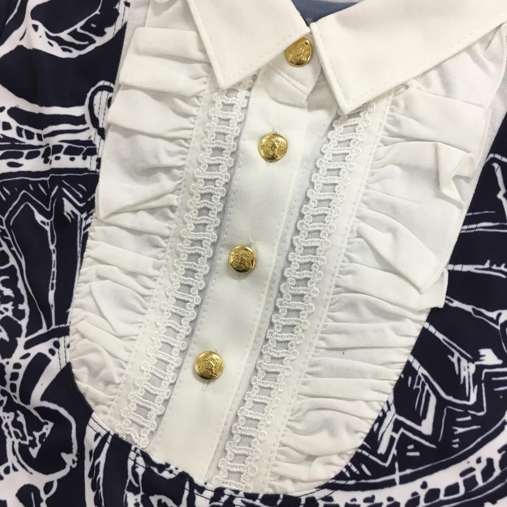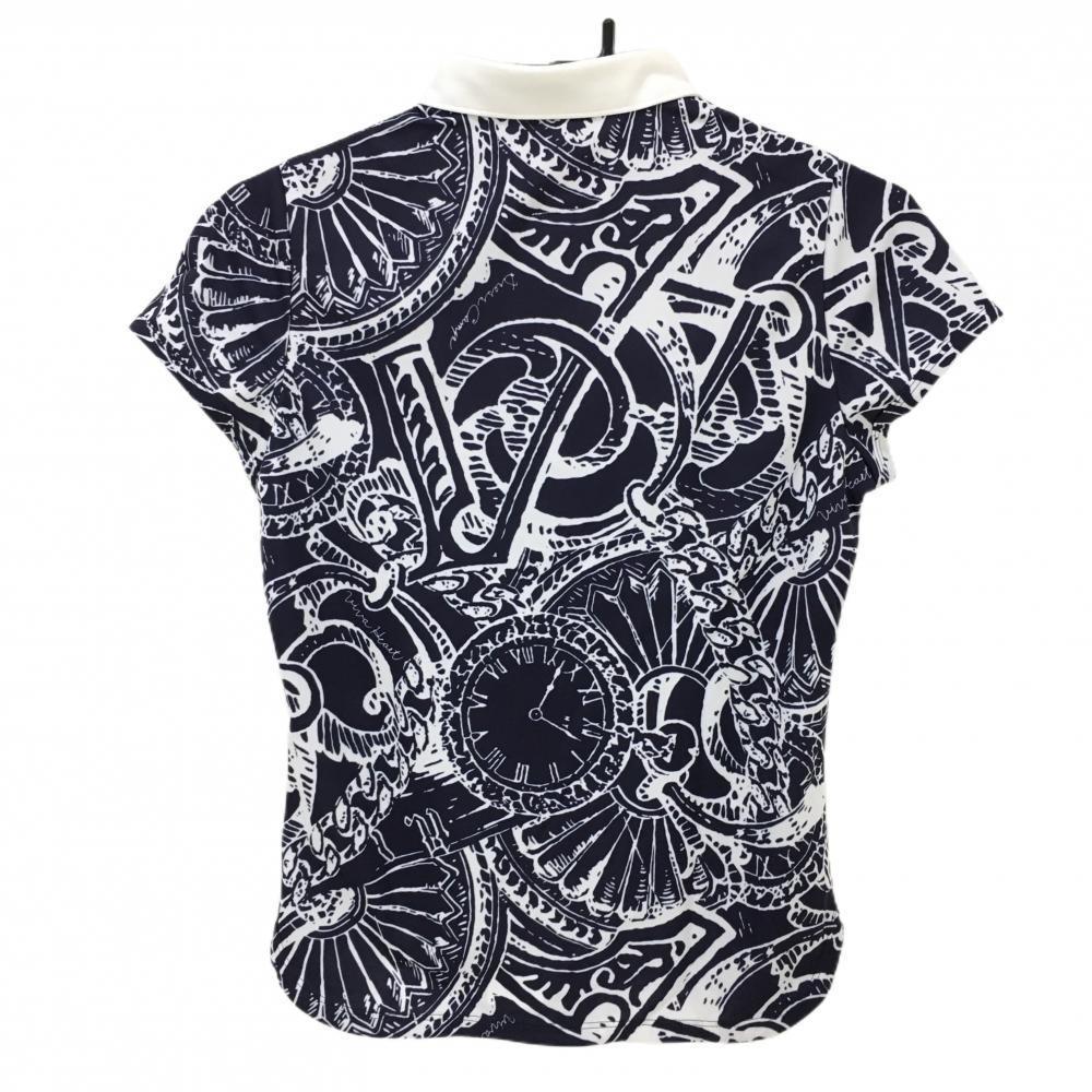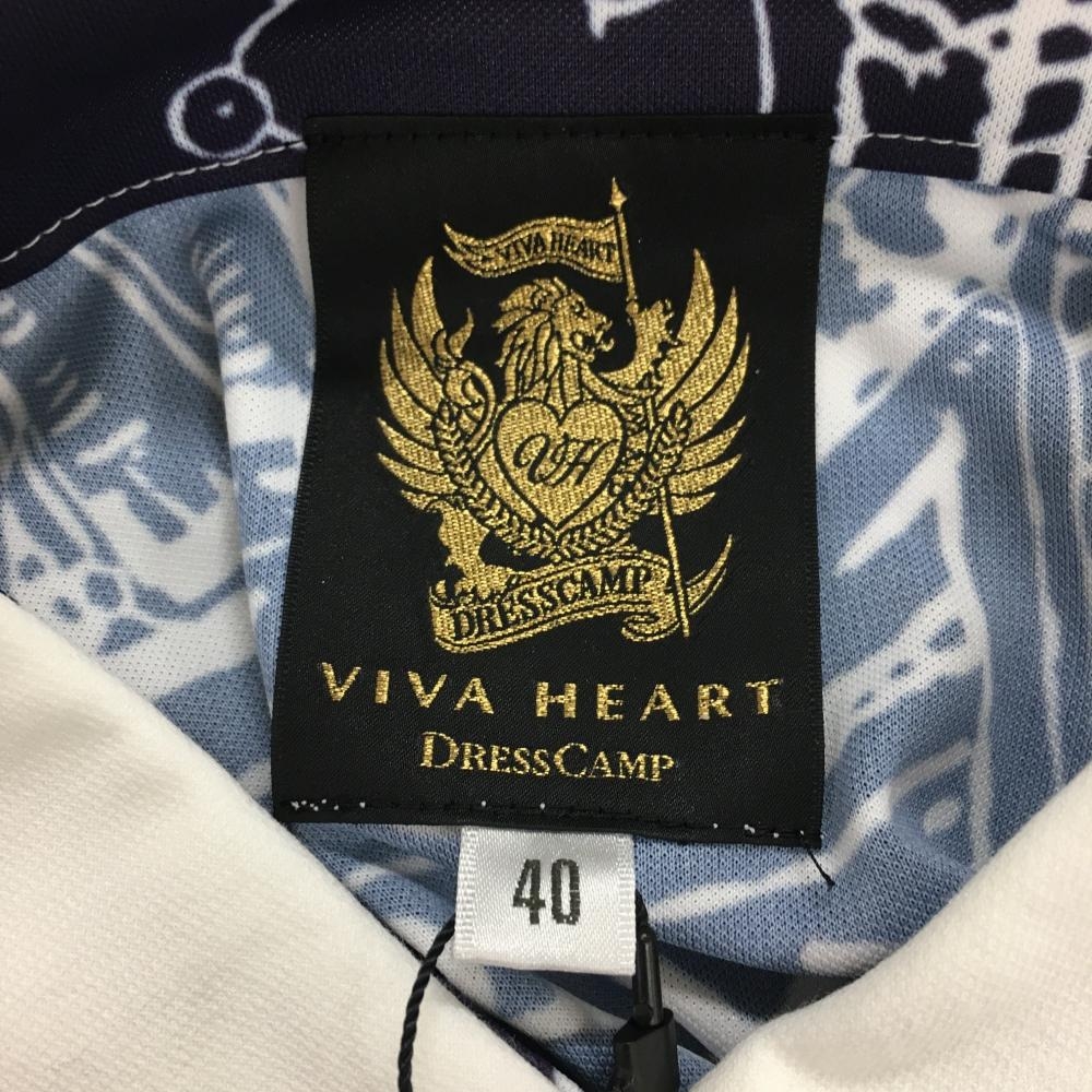 【新品】ビバハート×DRESSCAMP 半袖ポロシャツ ネイビー×白 総柄 前立てフリル レディース 40(M) ゴルフウェア VIVA HEART