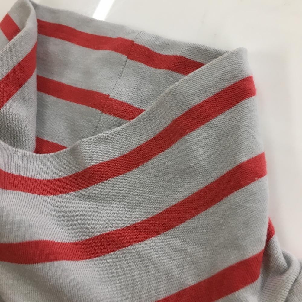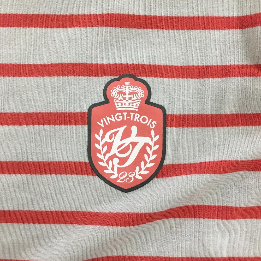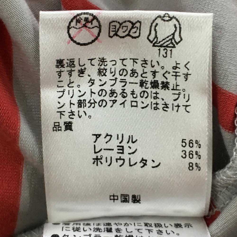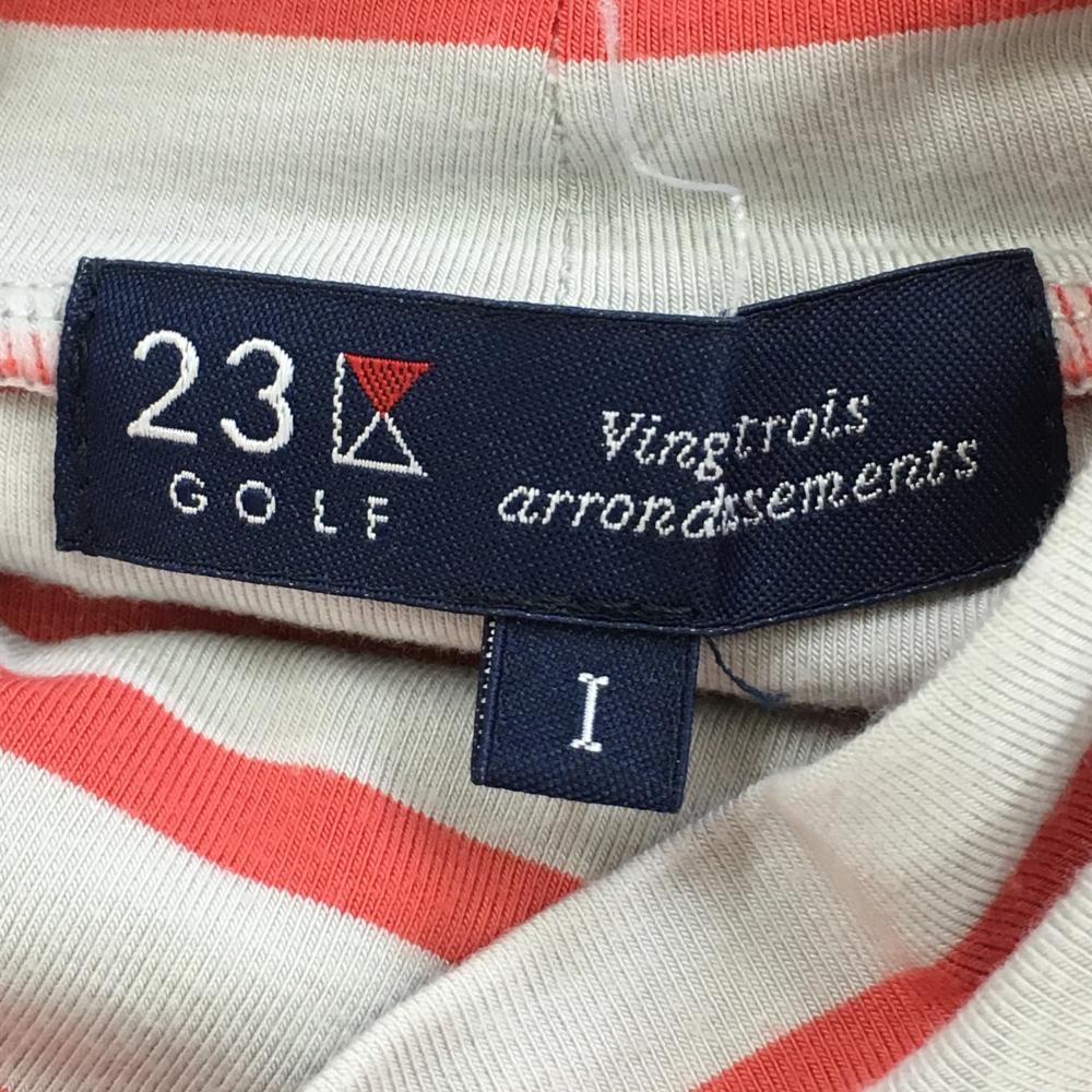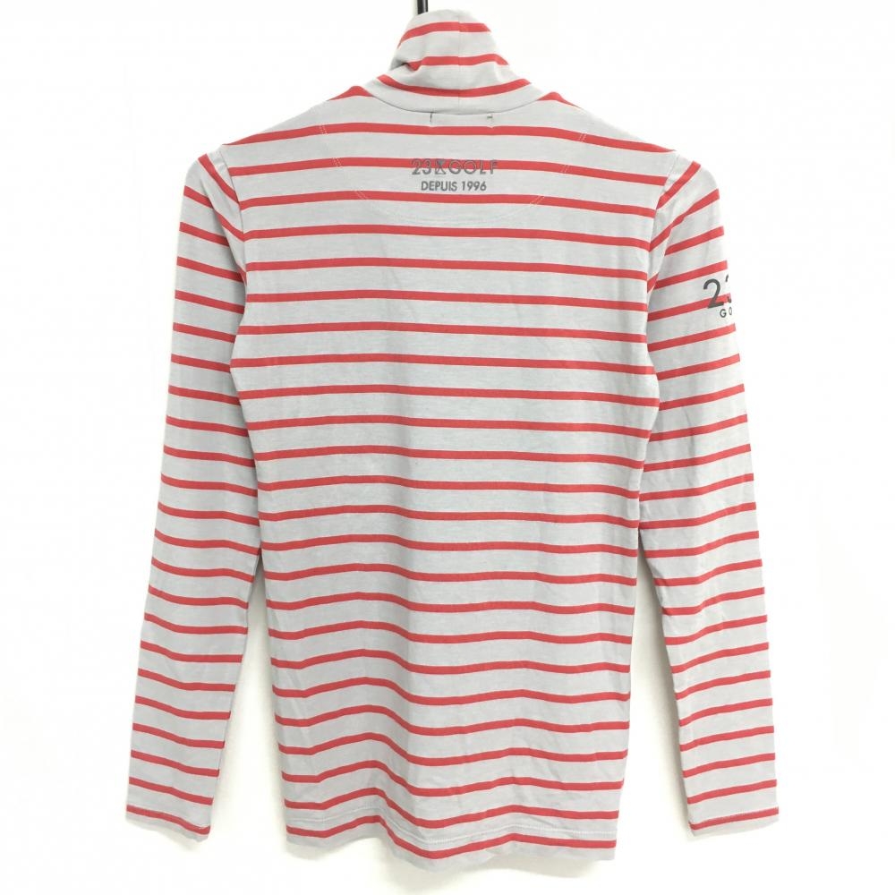 【美品】23区ゴルフ 長袖ハイネックシャツ ライトグレー×レッド ボーダー 袖ロゴ ストレッチ レディース I(M) ゴルフウェア 23区