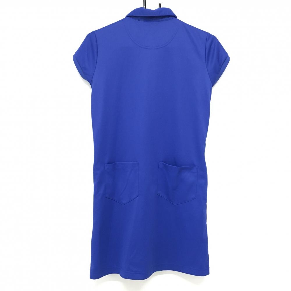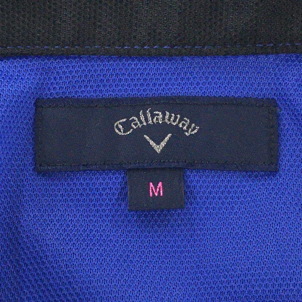 【美品】キャロウェイ 半袖ポロワンピース ブルー 裾マルチカラーライン ハーフジップ レディース M ゴルフウェア Callaway