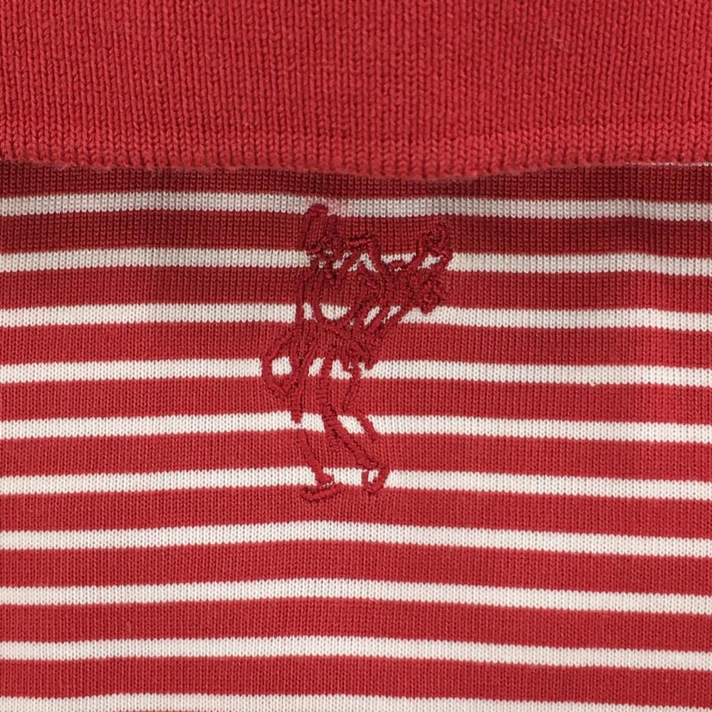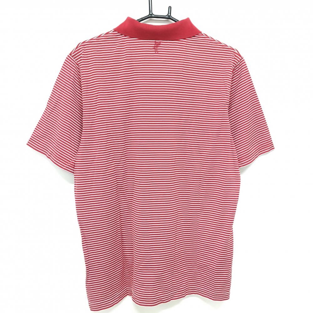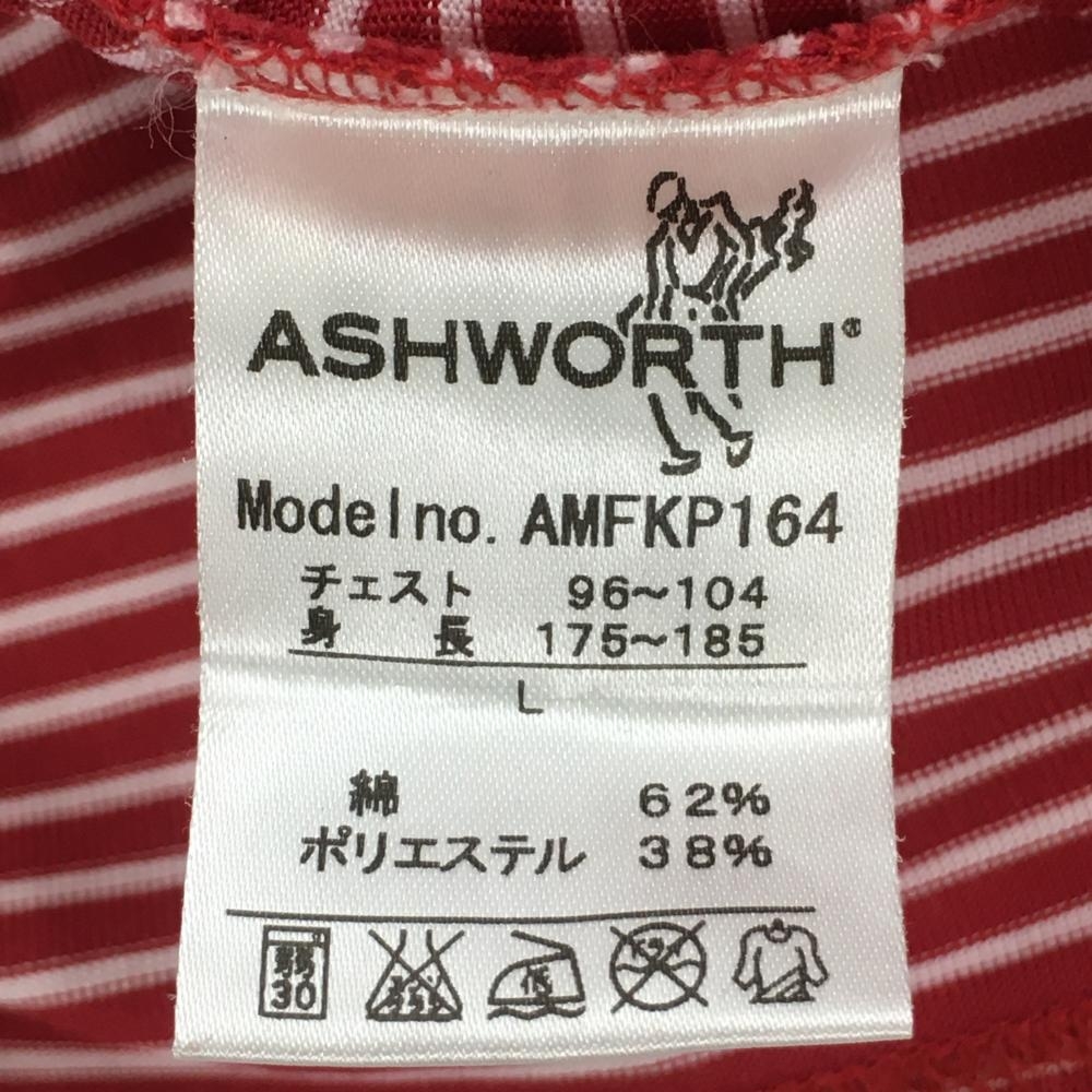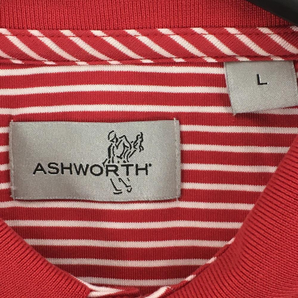 【美品】アシュワース 半袖ポロシャツ レッド×白 ボーダー柄 ロゴ刺しゅう メンズ L ゴルフウェア ASHWORTH