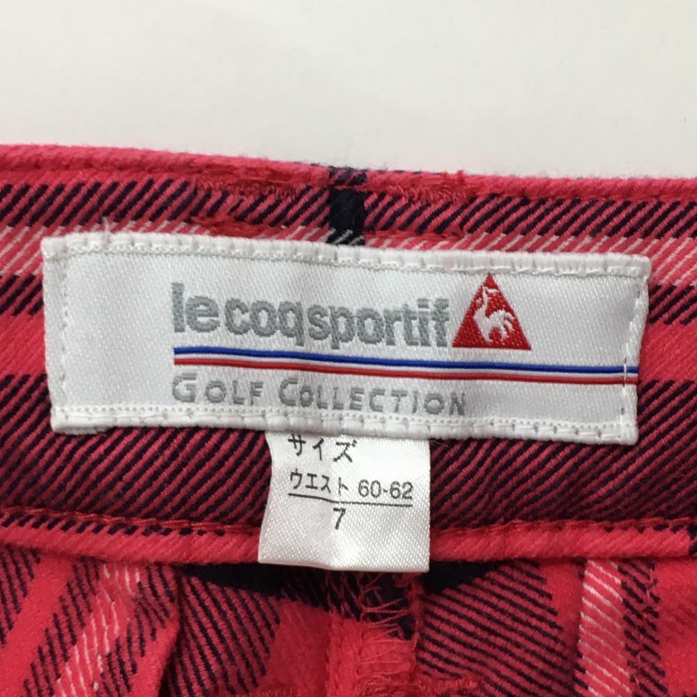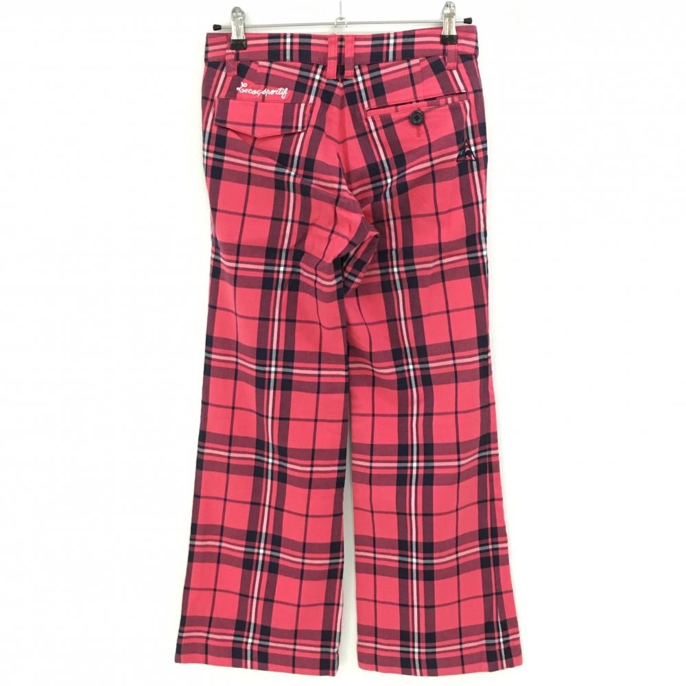 【美品】ルコック パンツ ピンク×ネイビー チェック 総柄 ストレッチ レディース 7 ゴルフウェア le coq sportif