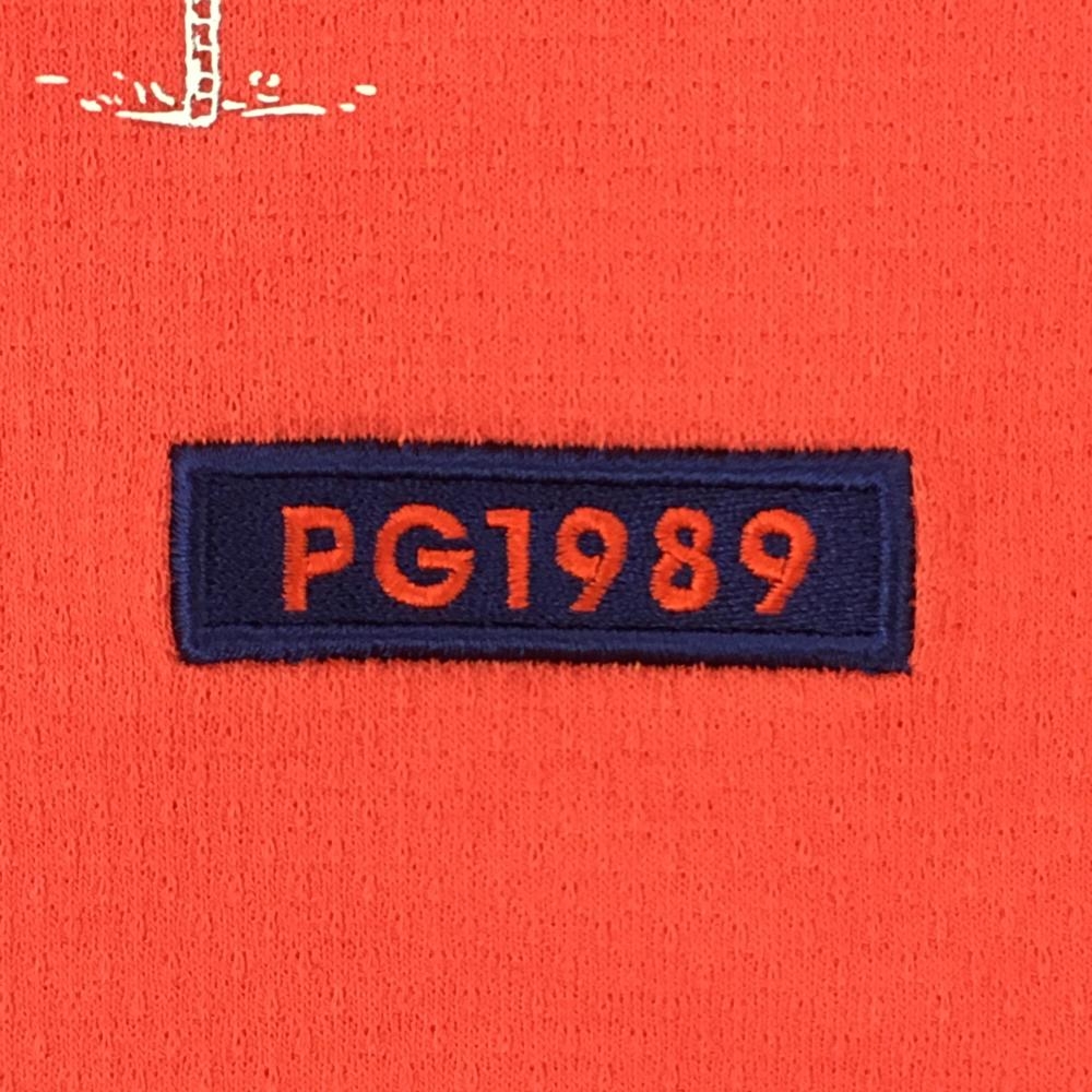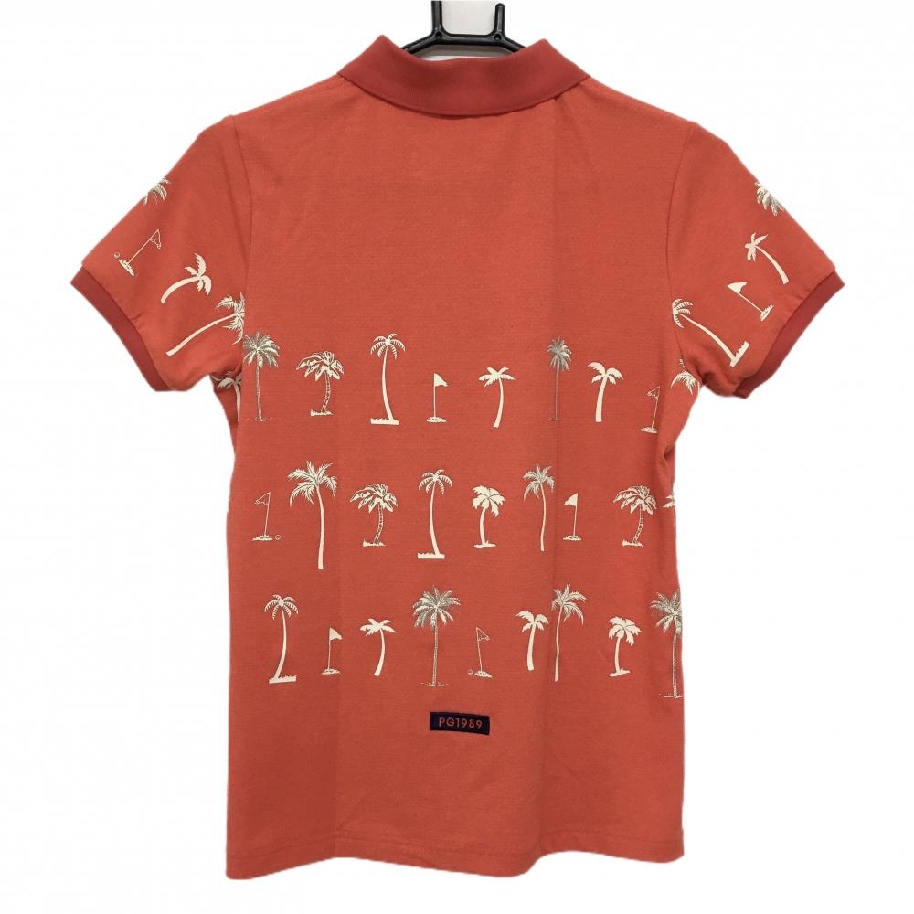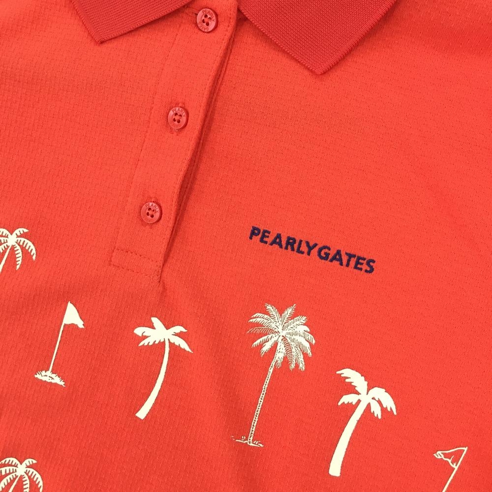 【超美品】パーリーゲイツ 半袖ポロシャツ オレンジ×ベージュ ヤシの木 レディース 0(S) ゴルフウェア 2023年モデル PEARLY GATES
