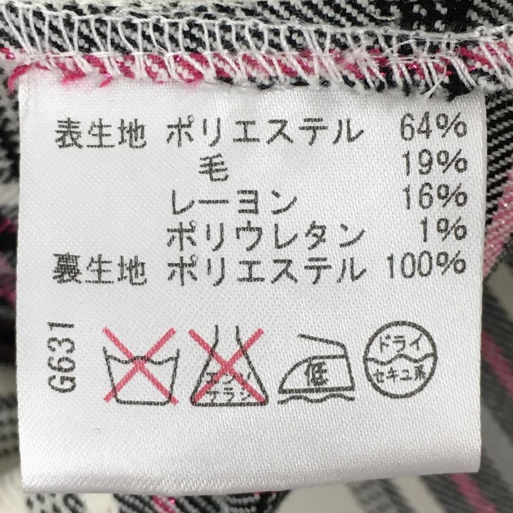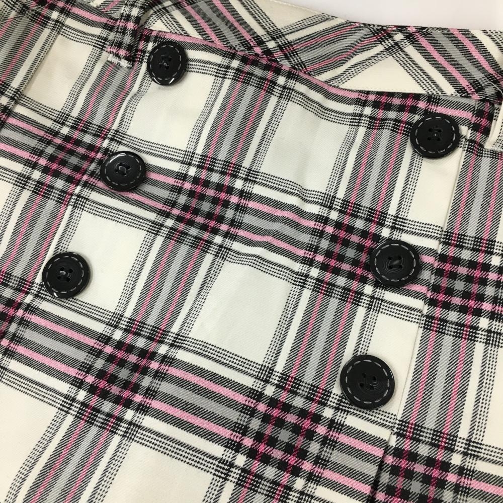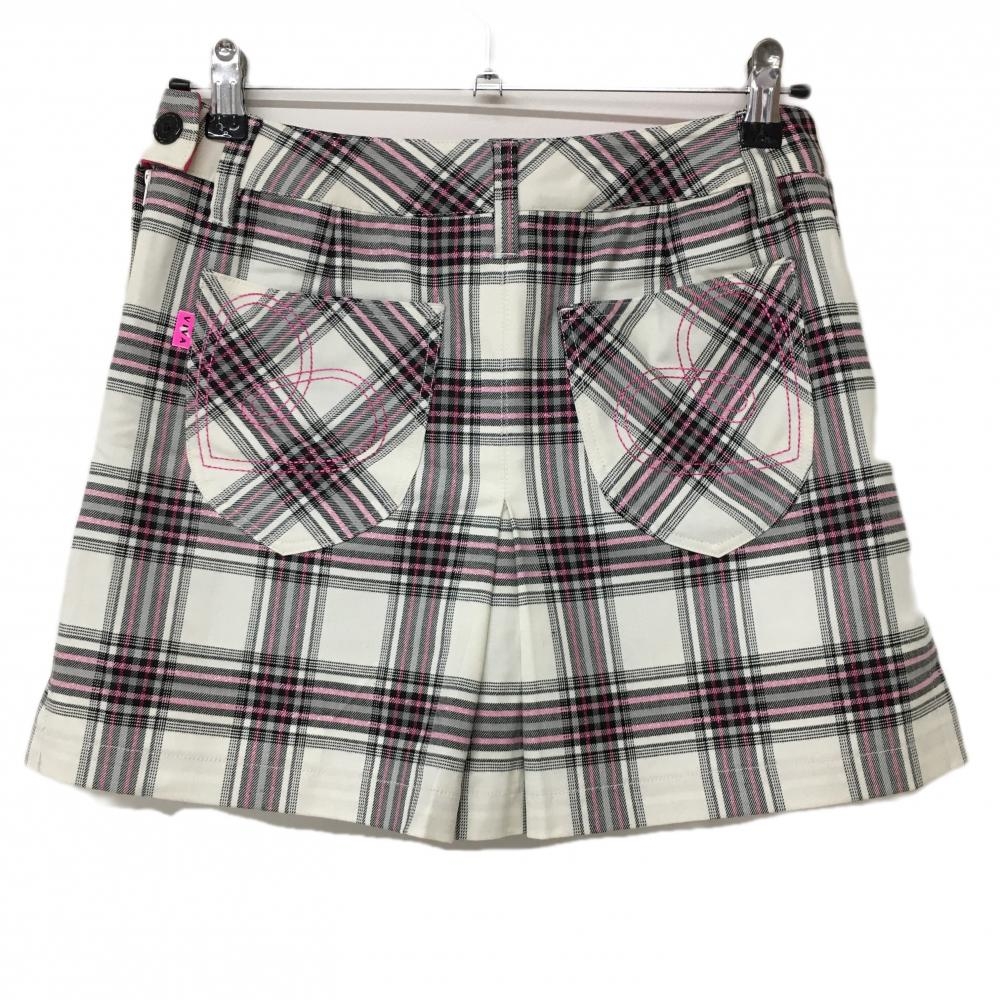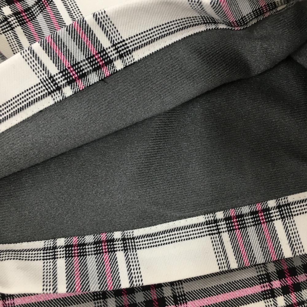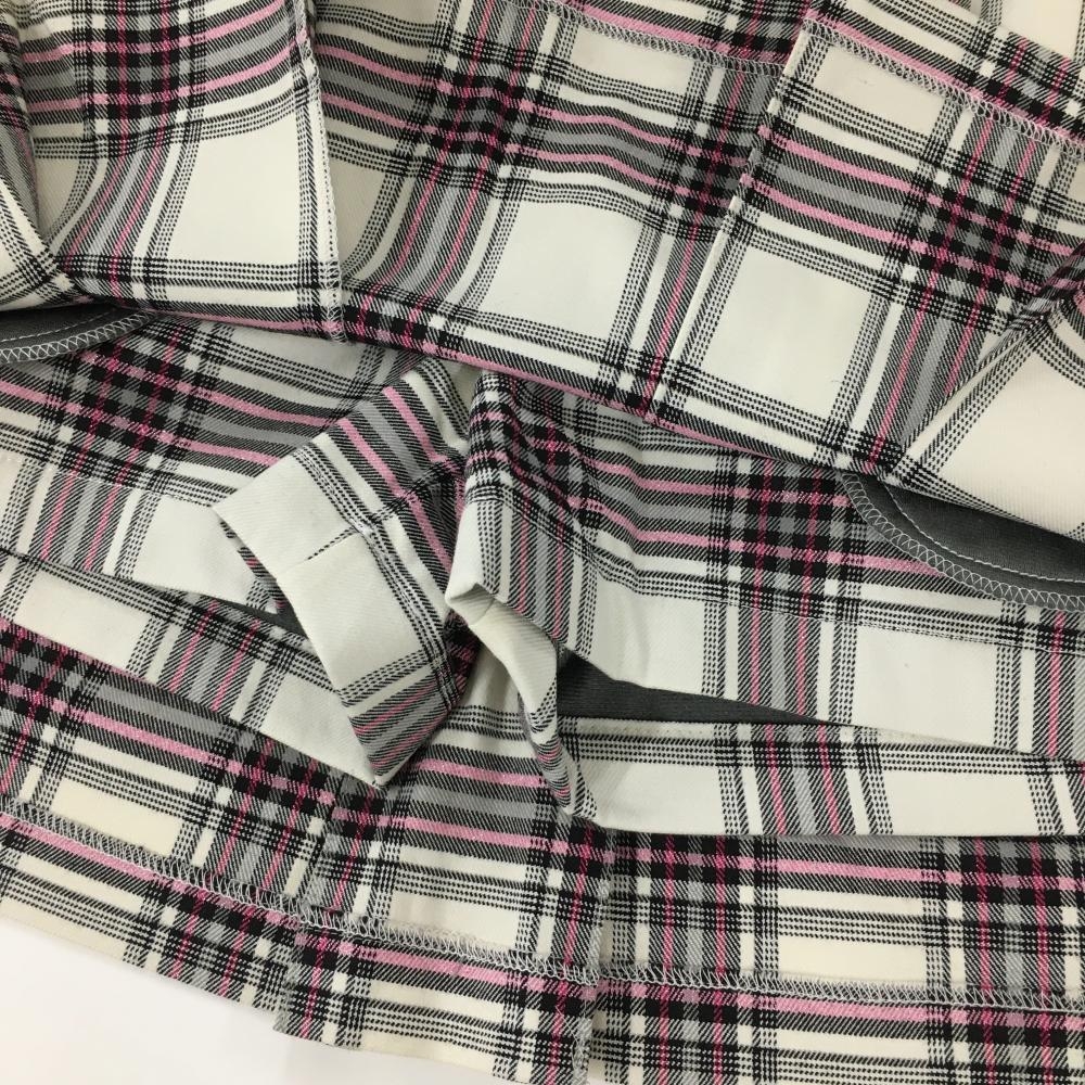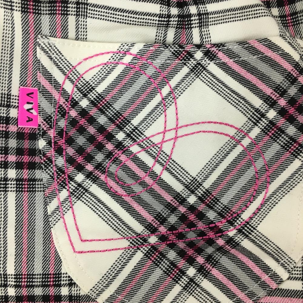 【超美品】ビバハート スカート 白×黒 チェック総柄 ピンクラメ 内側インナーパンツ 裏起毛 レディース 38(S) ゴルフウェア VIVA HEART