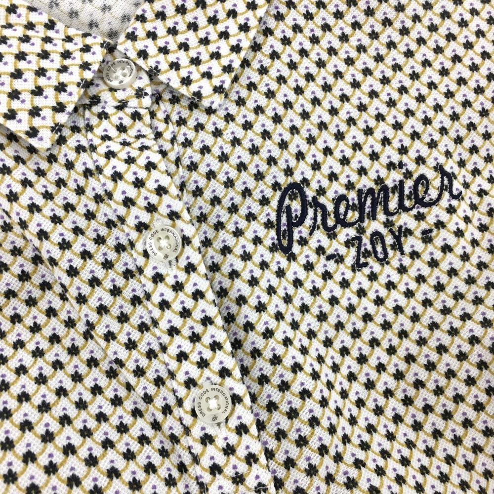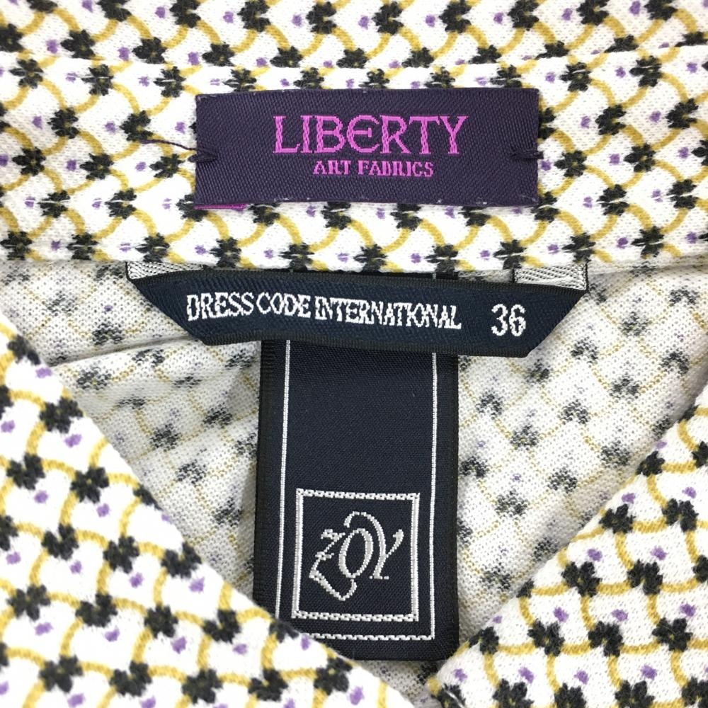 【超美品】ゾーイ×LIBERTY 半袖ポロシャツ 白×黒×イエロー 総柄 コットン100% レディース 36(S) ゴルフウェア ZOY