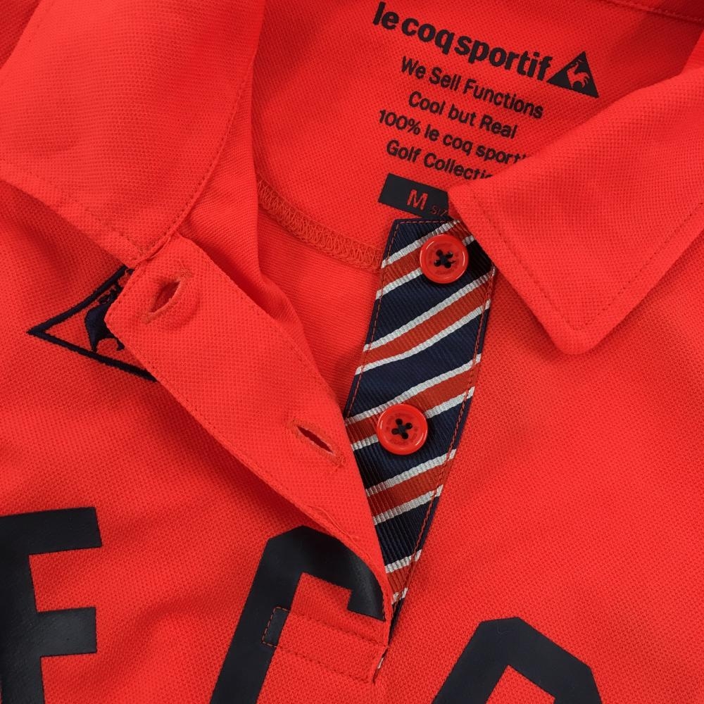 【美品】ルコック 半袖ポロシャツ レッド×ネイビー ビッグプリント 袖ワッペン レディース M ゴルフウェア le coq sportif