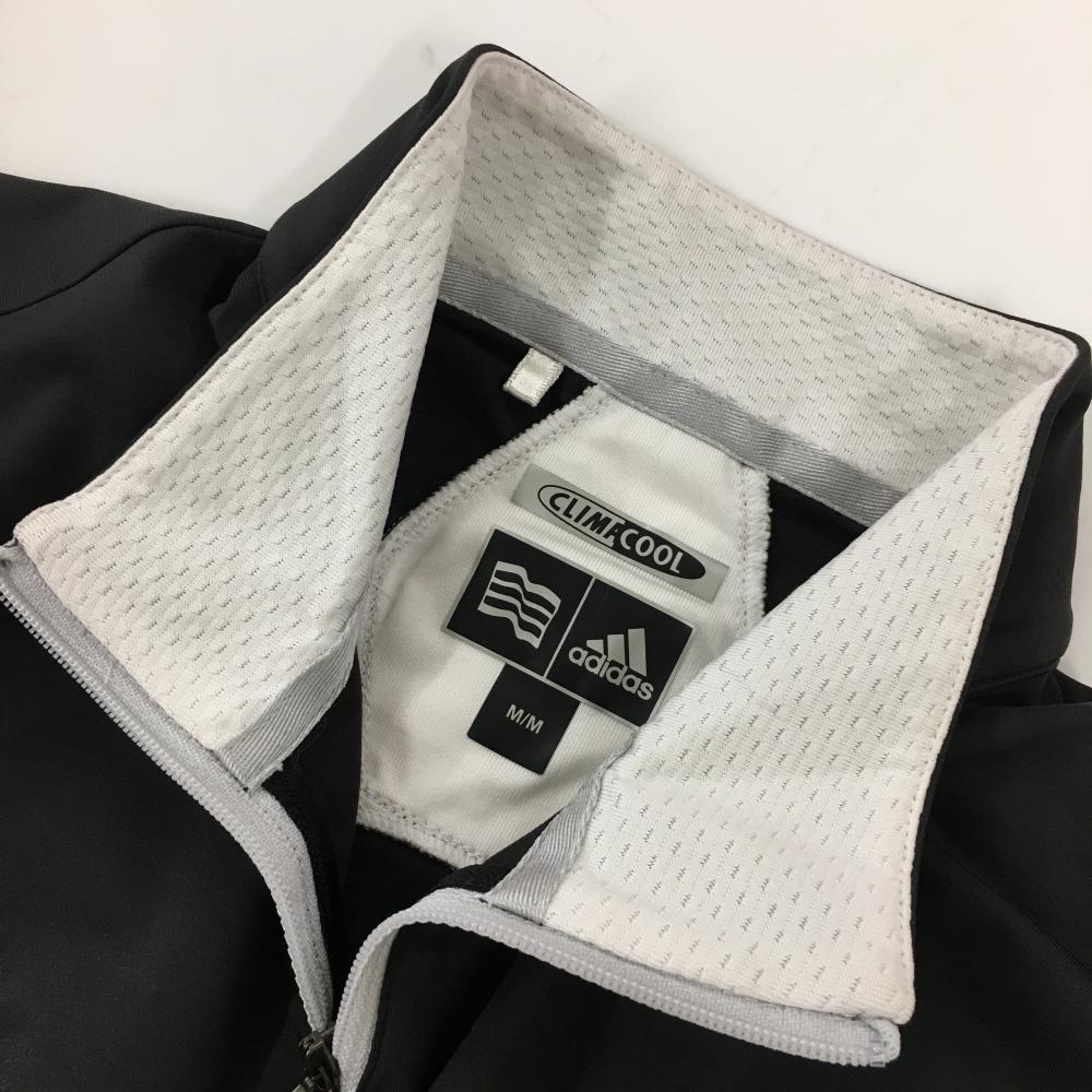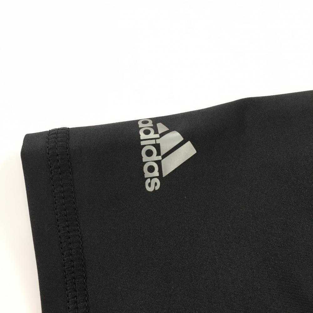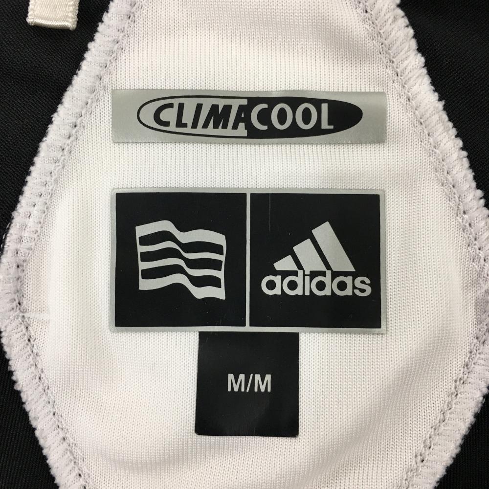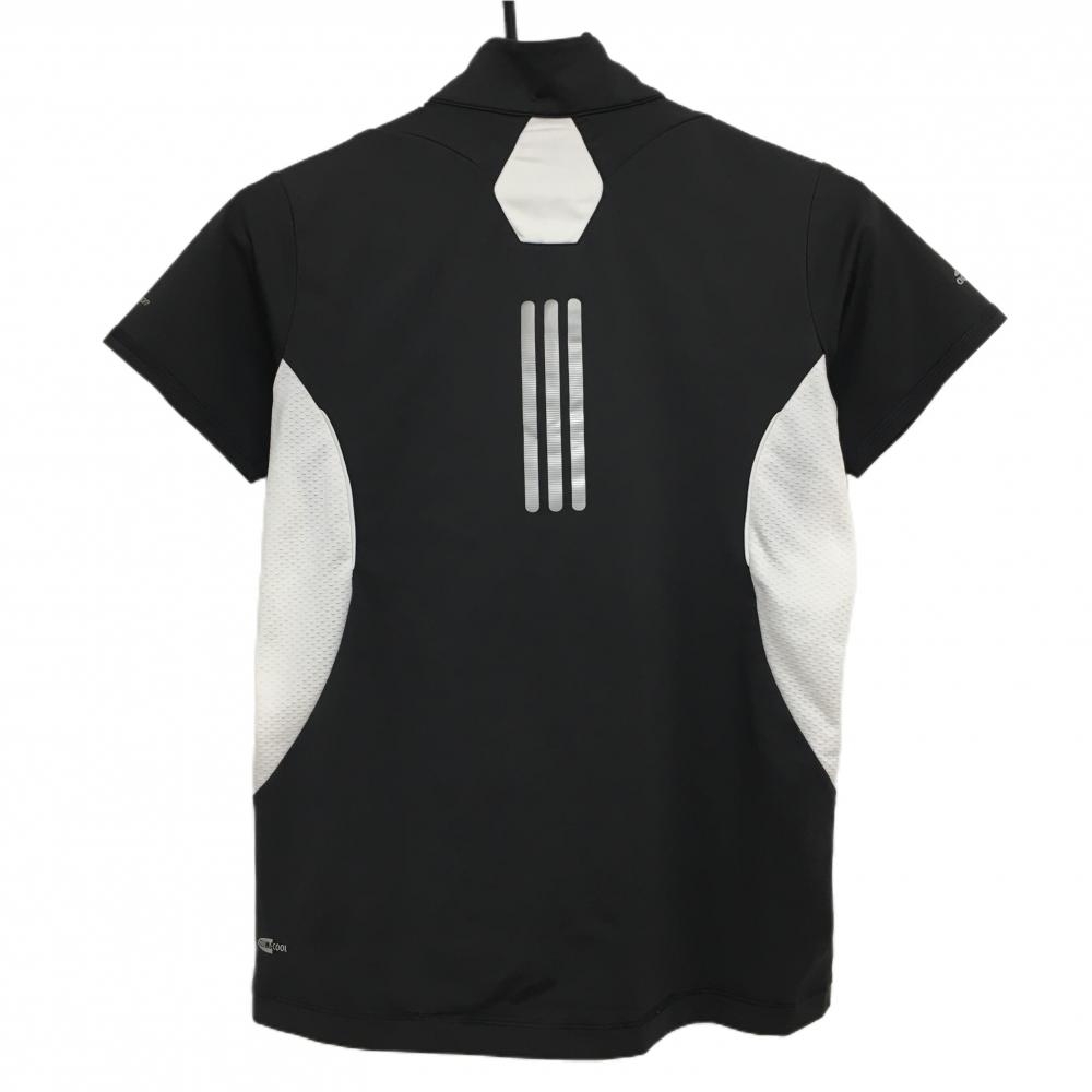 【美品】アディダス 半袖ハイネックシャツ 黒×白 サイドメッシュ調 ハーフジップ ロゴプリント レディース M/M ゴルフウェア adidas