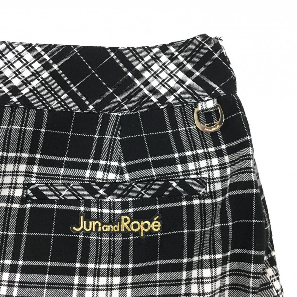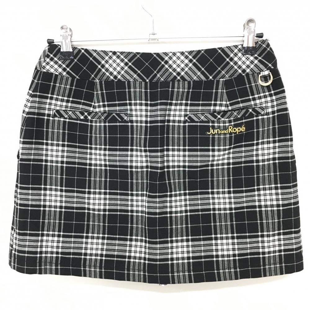 【超美品】ジュンアンドロペ スカート 黒×白 チェック柄 内側インナーパンツ バックロゴ レディース L ゴルフウェア JUN&ROPE