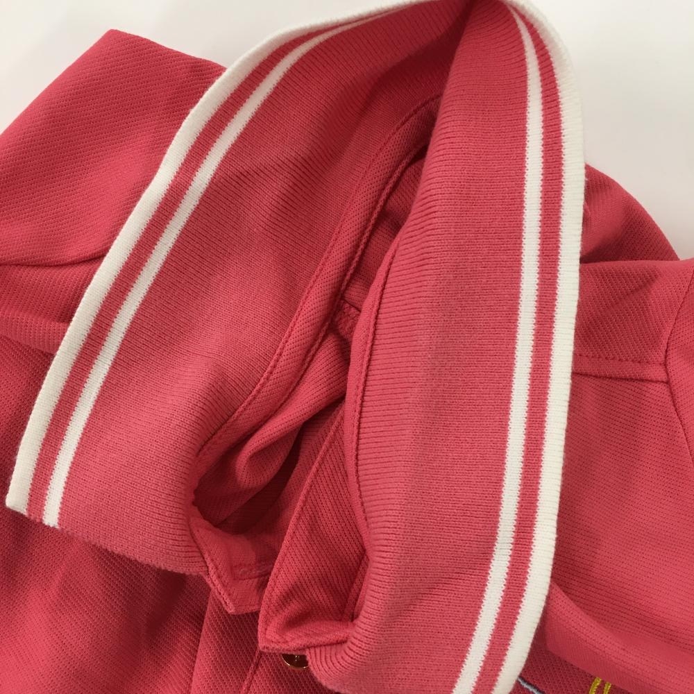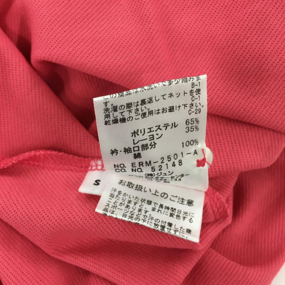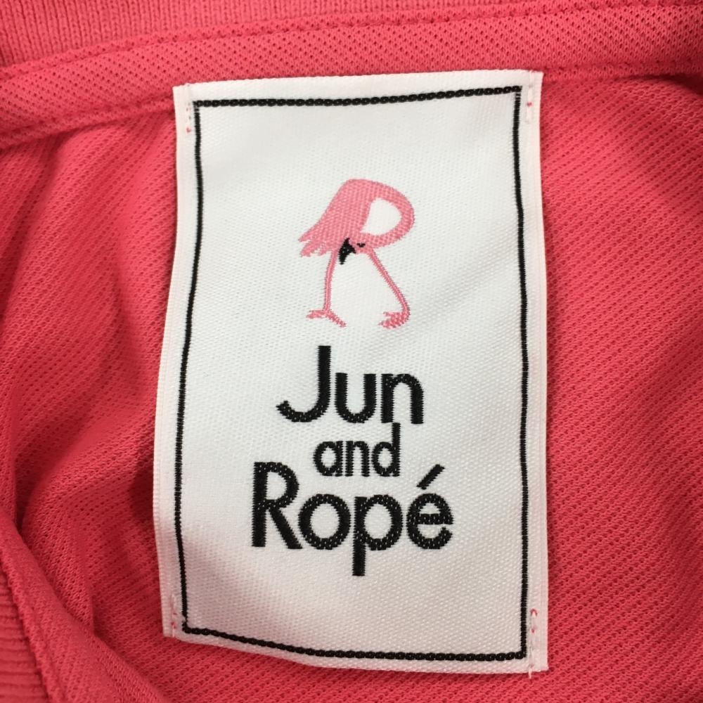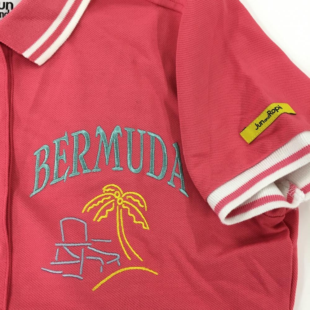 ジュンアンドロペ 半袖ポロシャツ ピンク×白 ヤシの木 袖ロゴ レディース S ゴルフウェア JUN&ROPE