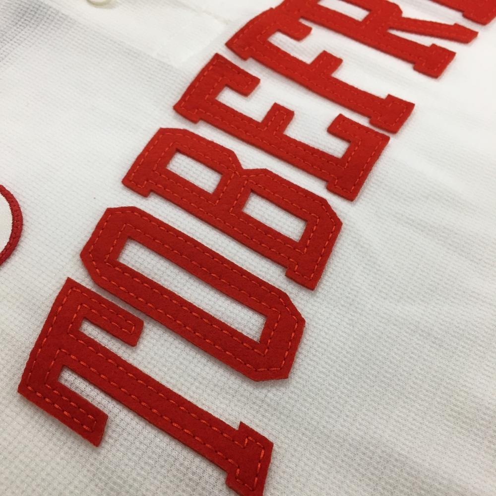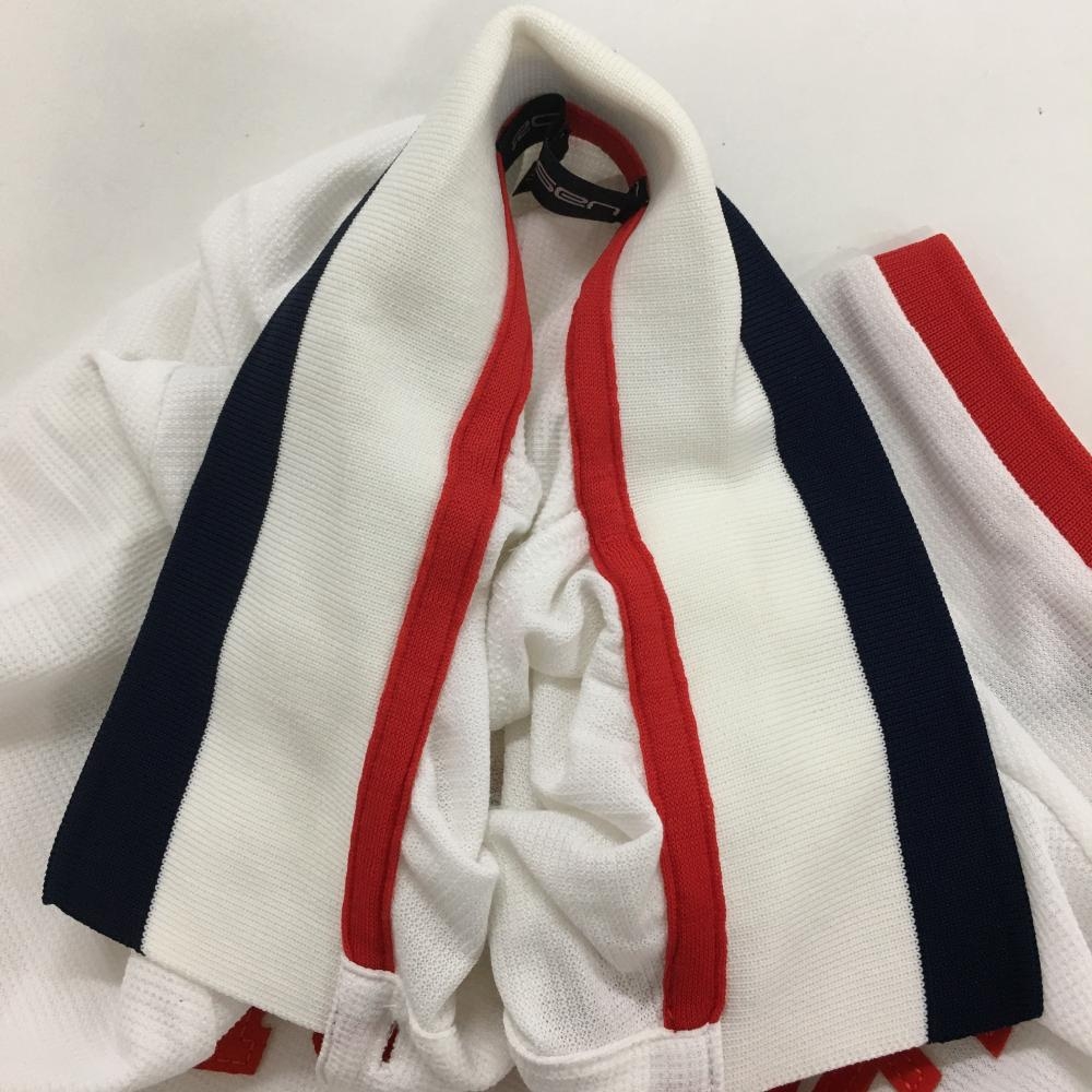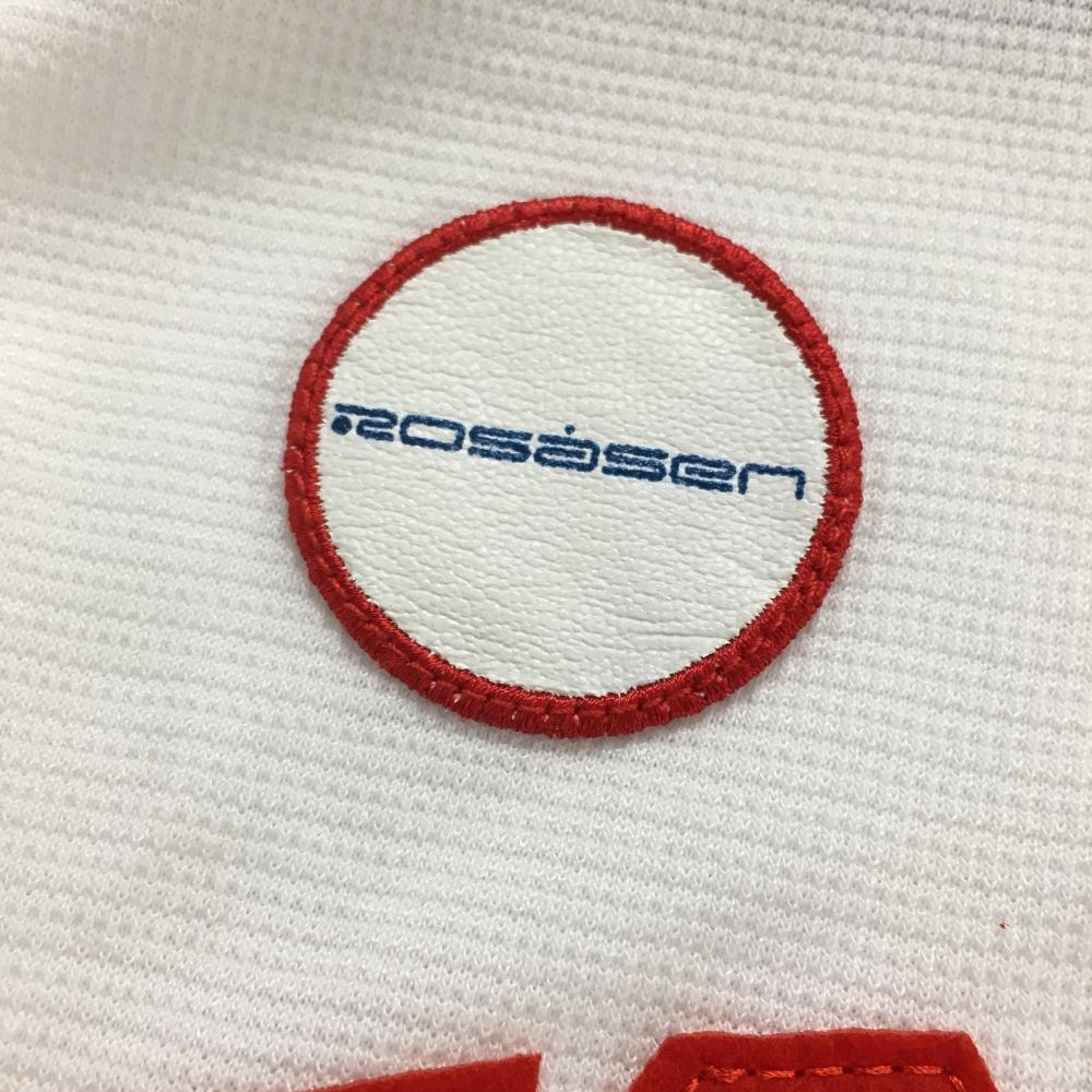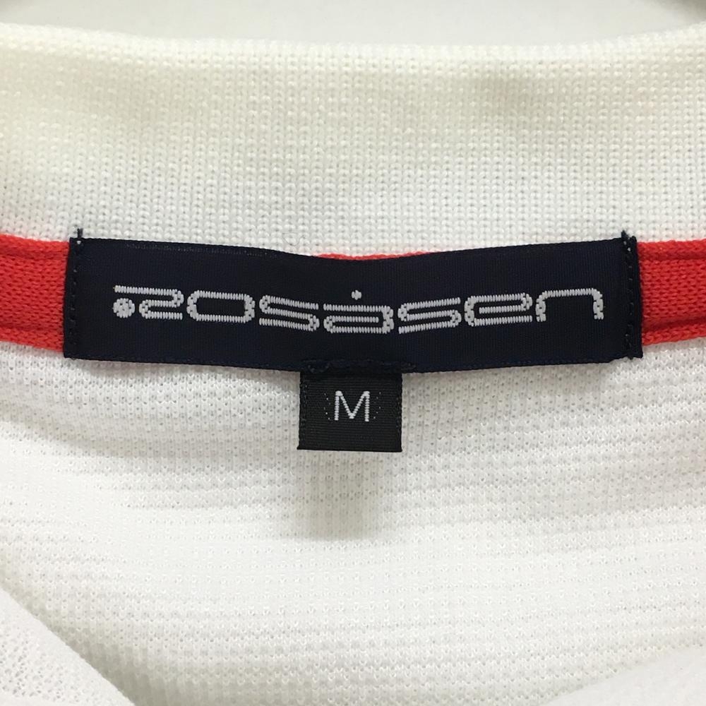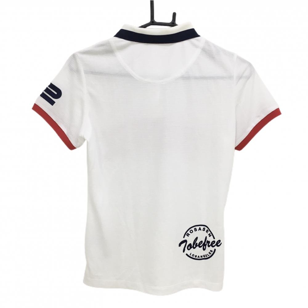 ロサーセン 半袖ポロシャツ 白×レッド 英字ワッペン 袖ロゴ刺しゅう レディース M ゴルフウェア Rosasen