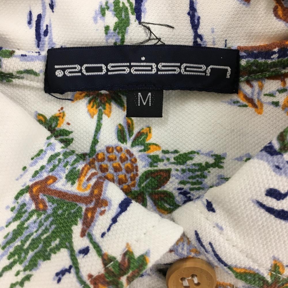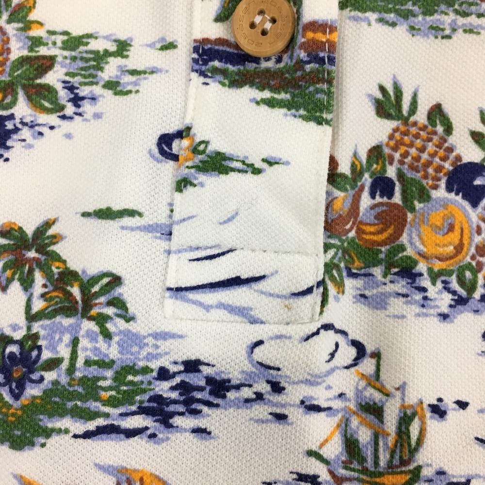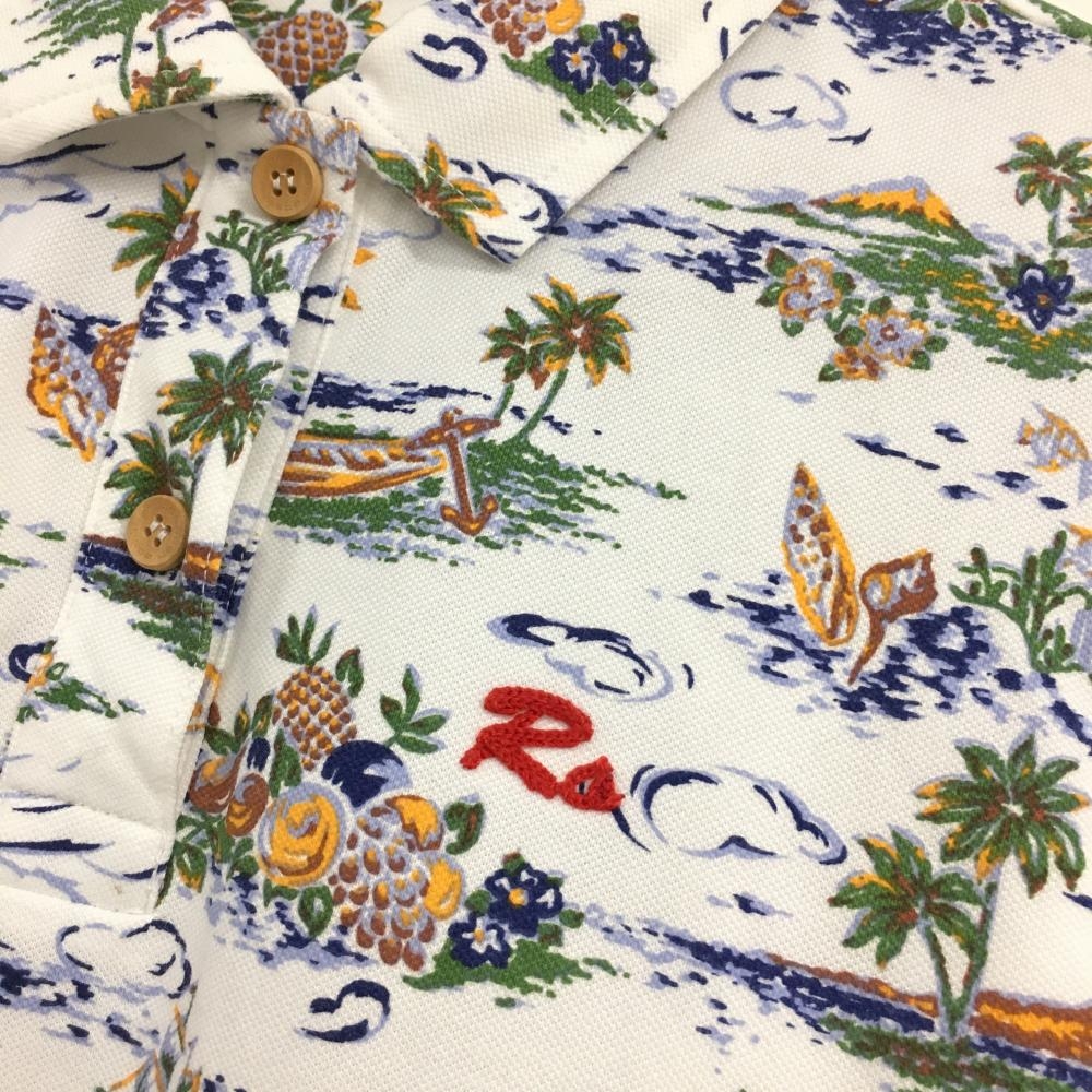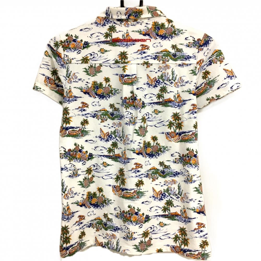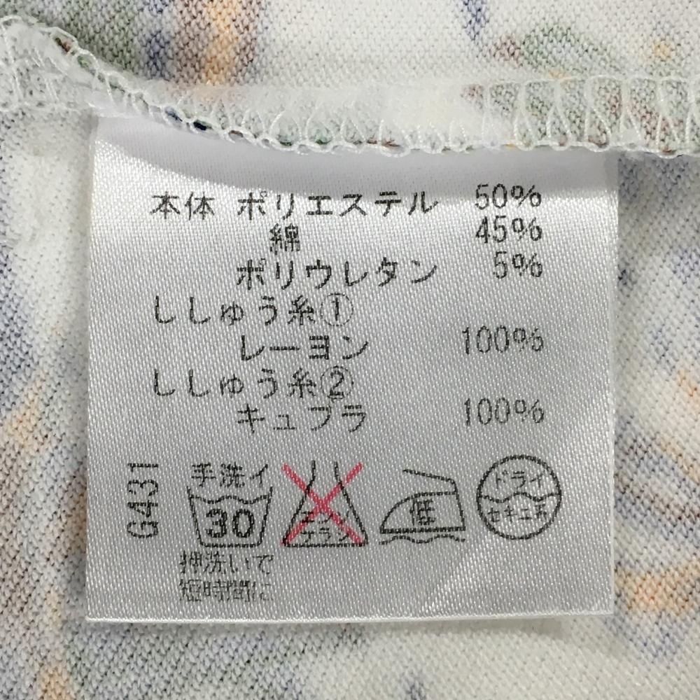 【美品】ロサーセン 半袖ポロシャツ 白×グリーン 総柄 胸元刺しゅう レディース M ゴルフウェア Rosasen