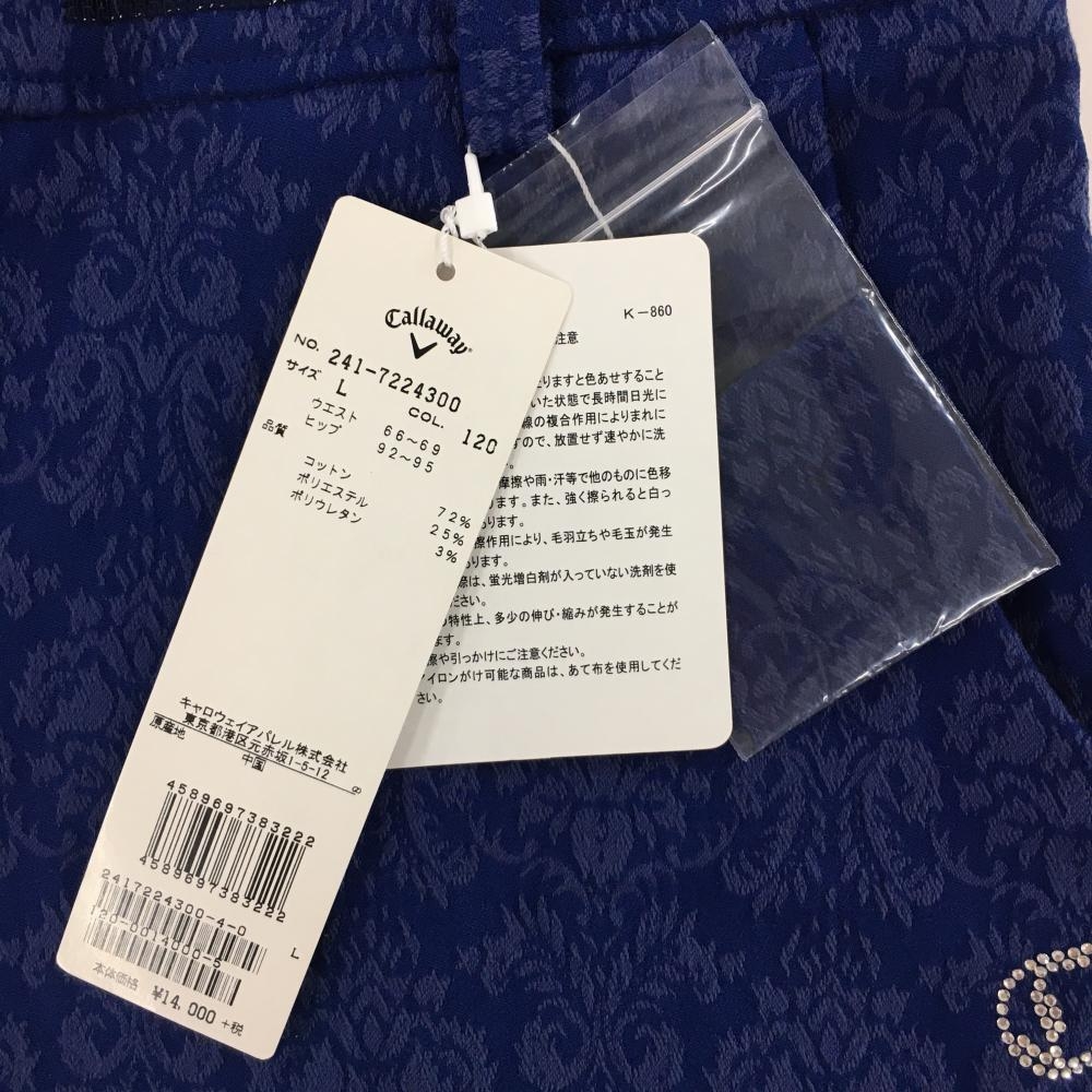 【新品】キャロウェイ ショートパンツ ブルー 総柄織生地 ラインストーンロゴ レディース L ゴルフウェア Callaway
