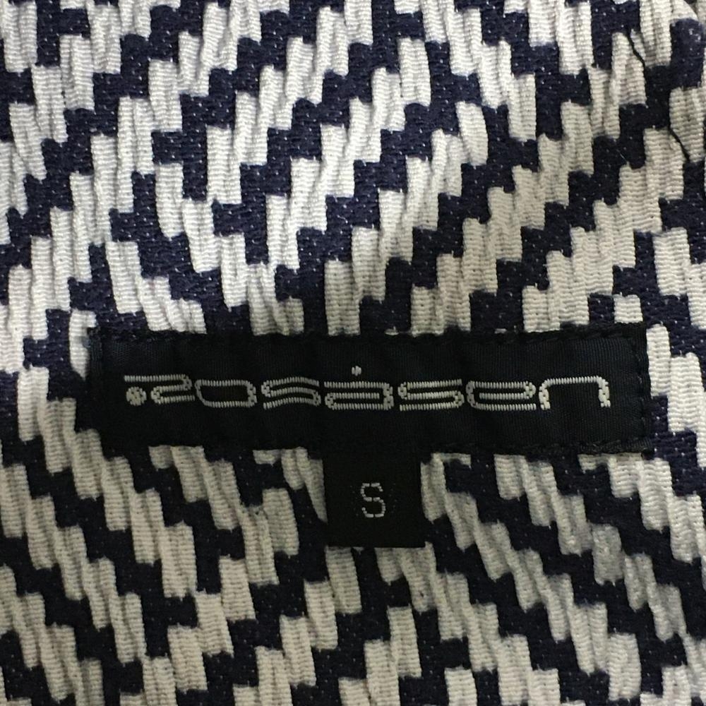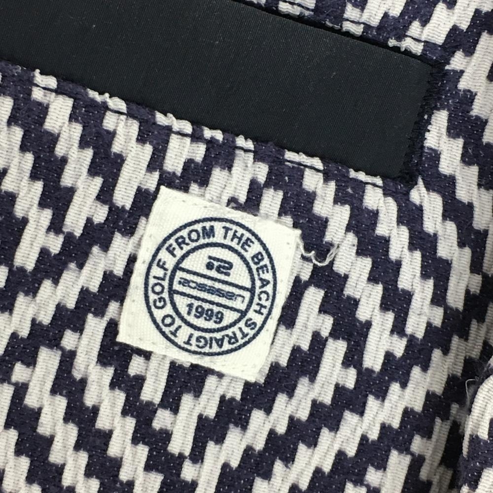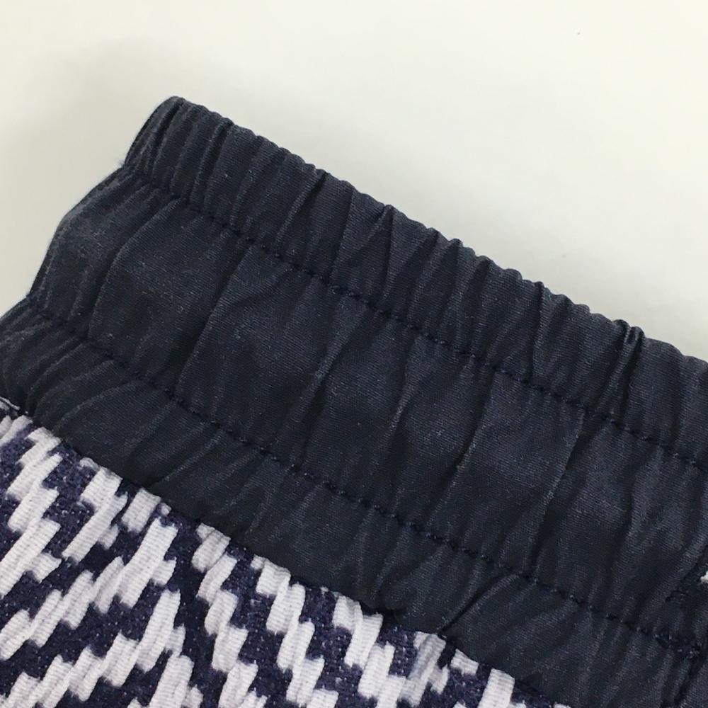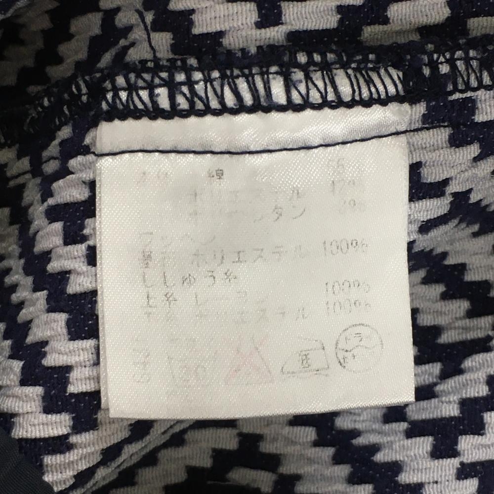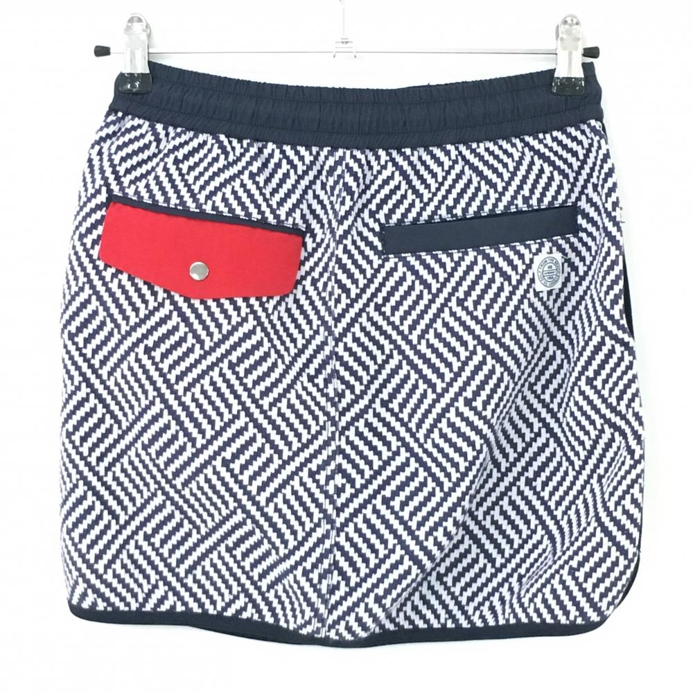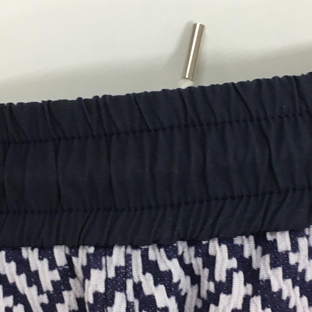 【美品】ロサーセン スカート ネイビー×白 総柄織生地 凹凸生地 パイピング ウエストゴム レディース S ゴルフウェア Rosasen