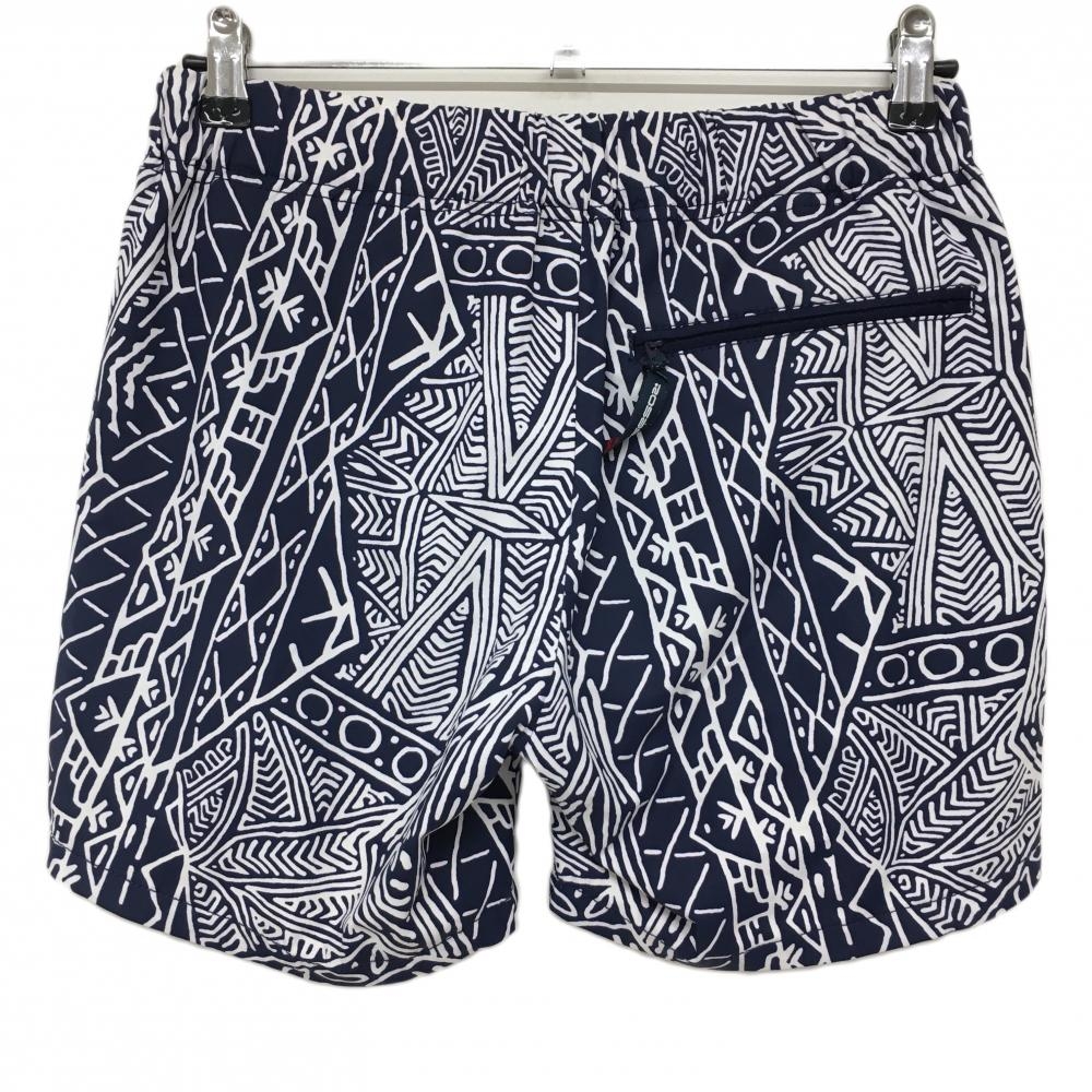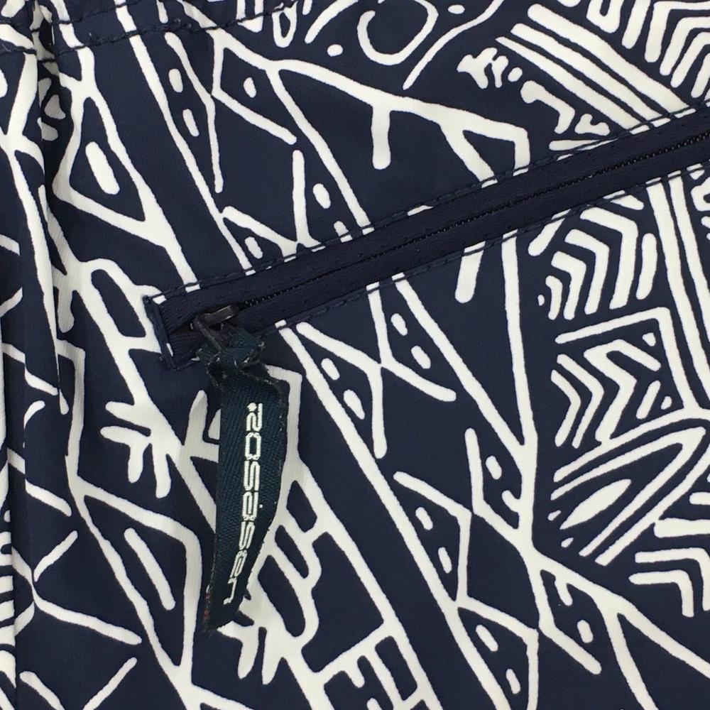 ロサーセン ショートパンツ ネイビー×白 総柄 前面一部パンチング生地 ウエストゴム レディース M ゴルフウェア Rosasen