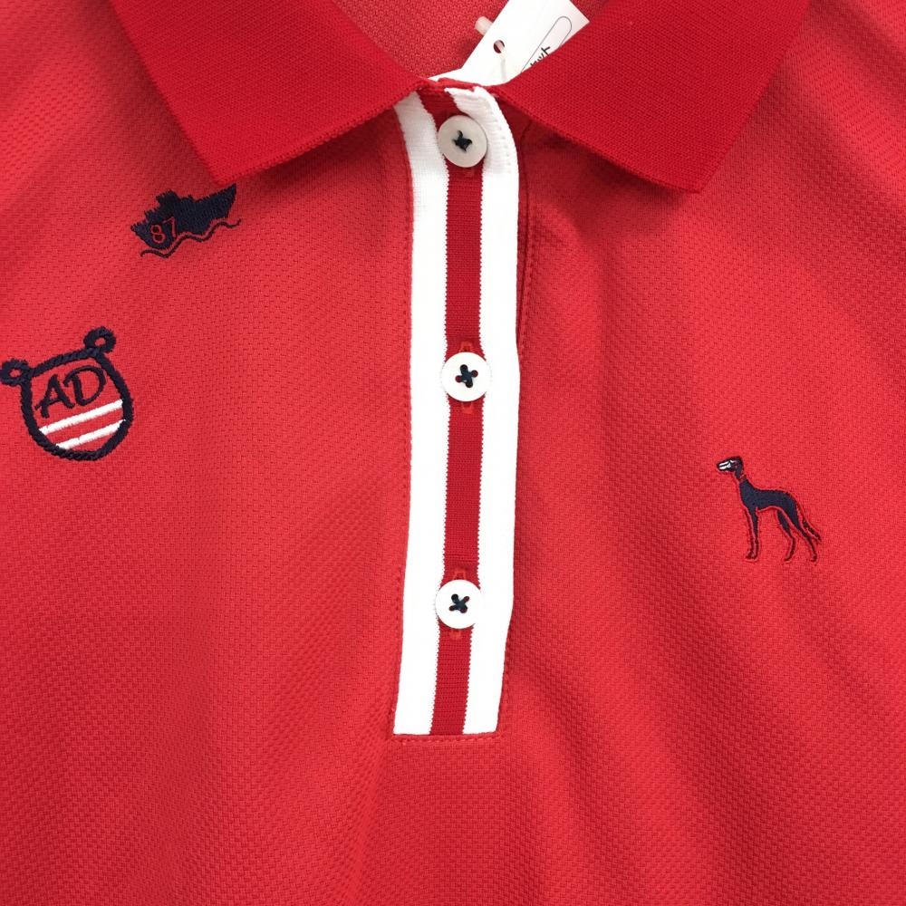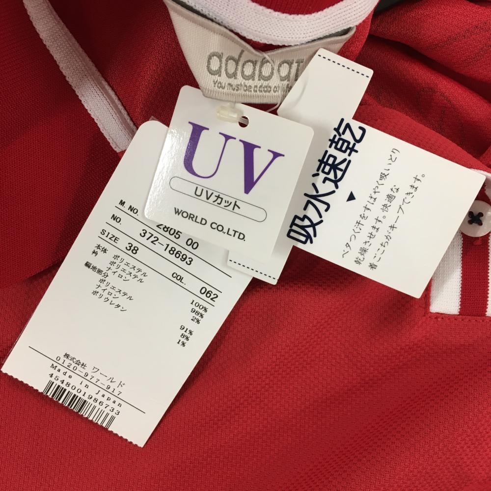 【新品】アダバット 半袖ポロシャツ レッド×白 バックプリント レディース 38(M) ゴルフウェア adabat