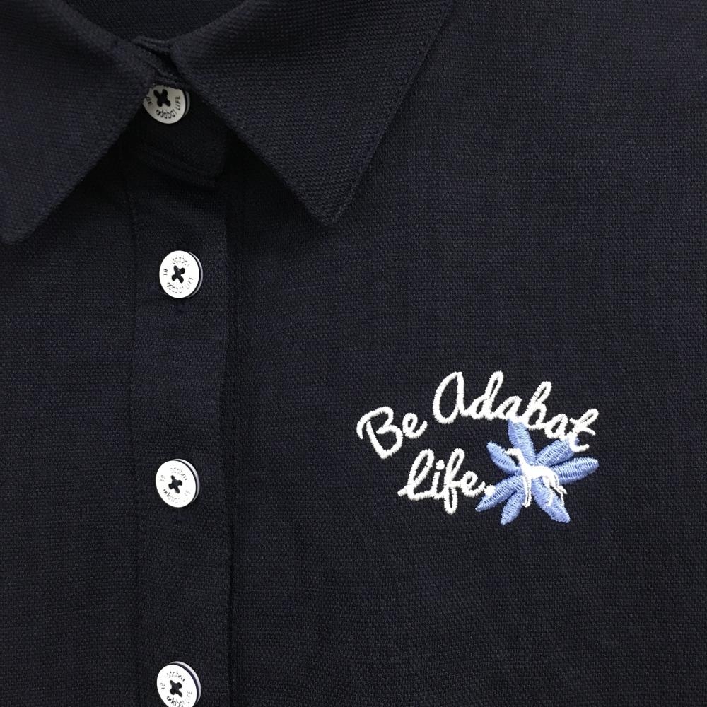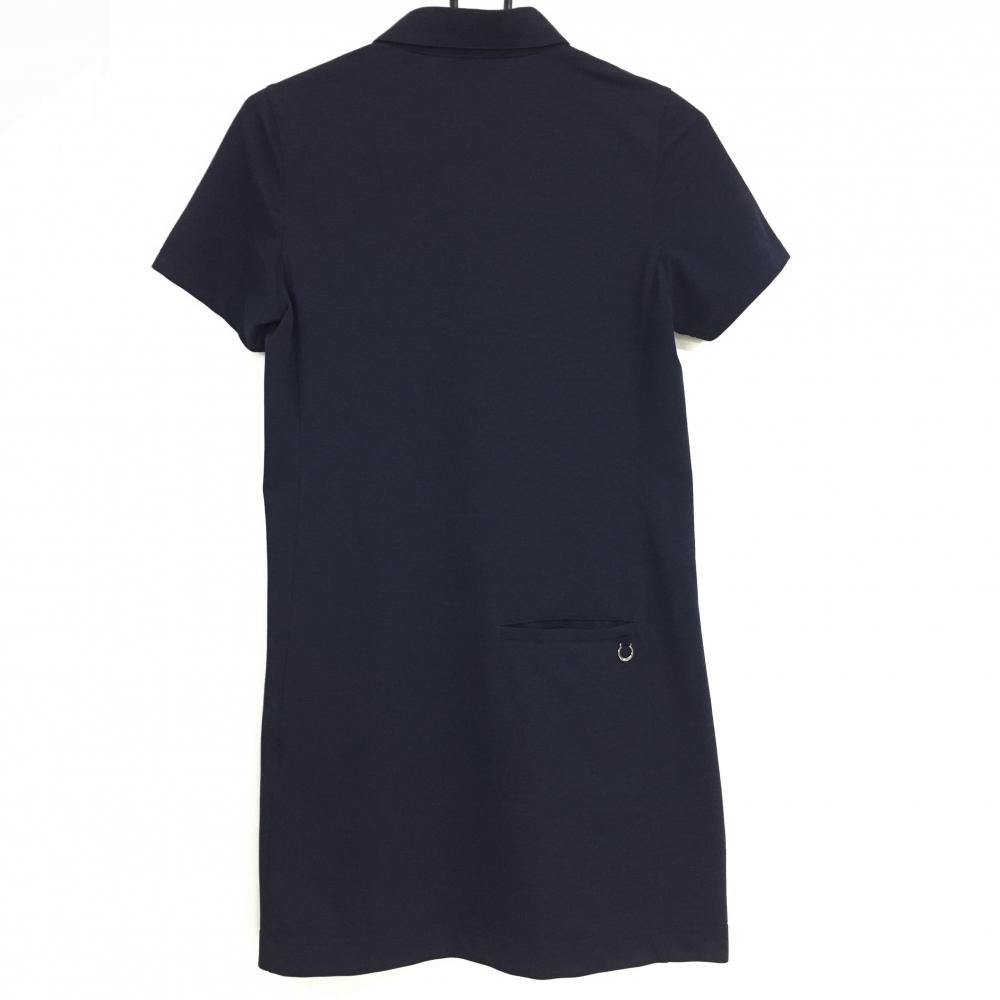 【超美品】アダバット 半袖ポロワンピース ネイビー 無地 胸元刺しゅう レディース 36(S) ゴルフウェア adabat