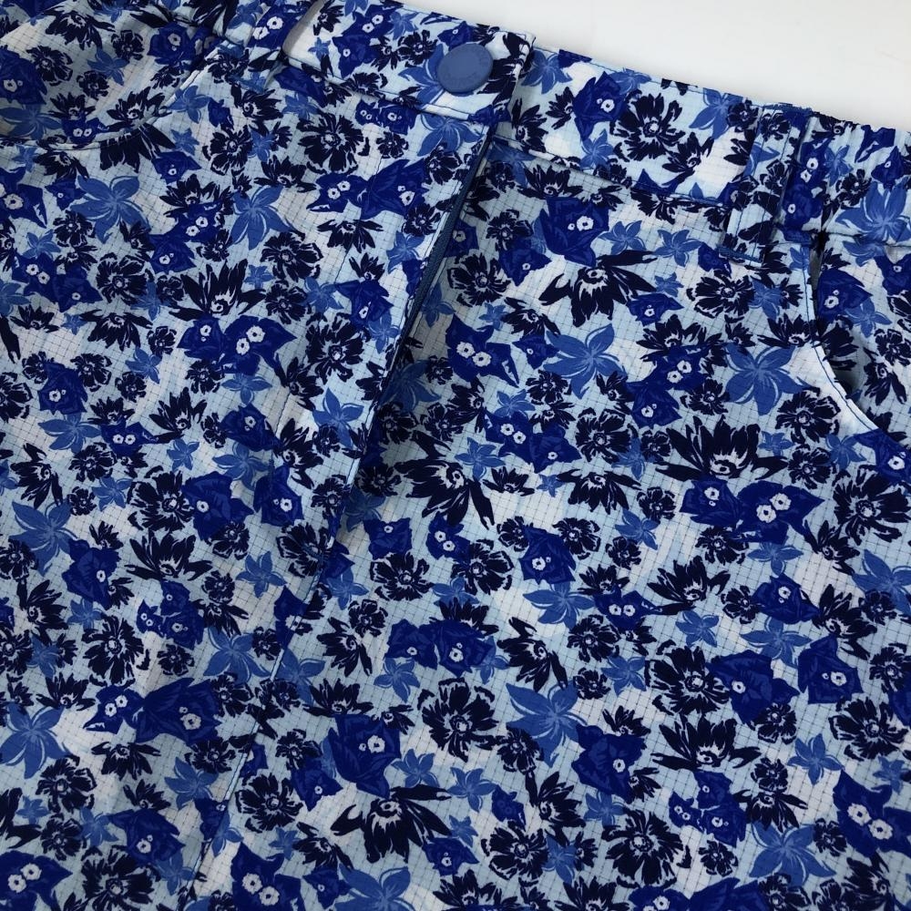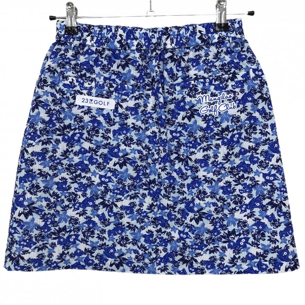 【超美品】23区ゴルフ スカート ブルー×白 花柄 メッシュ調 レディース 0(S) ゴルフウェア 23区