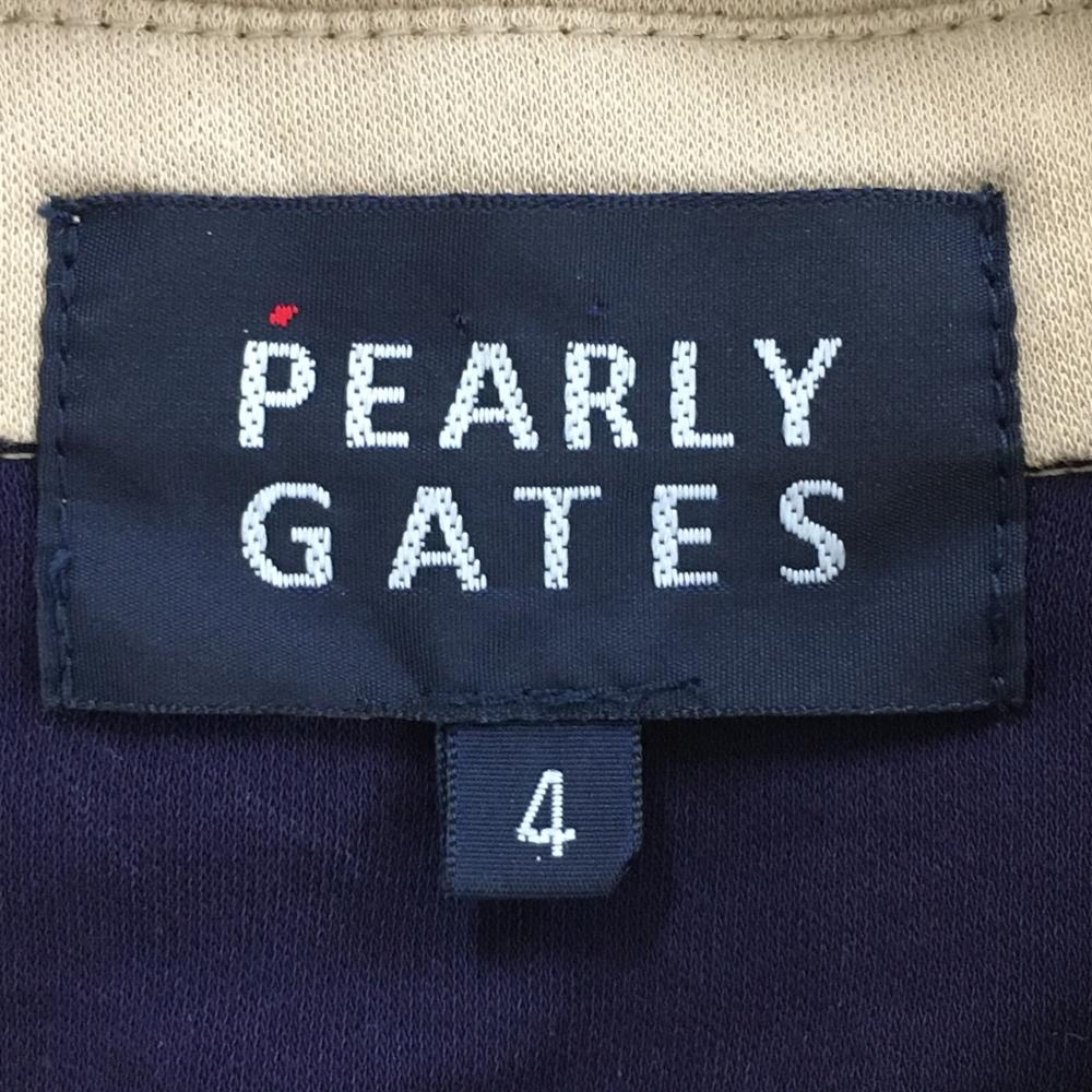 パーリーゲイツ 半袖ポロシャツ ベージュ×ネイビー×ピンク バイカラー メンズ 4(M) ゴルフウェア PEARLY GATES