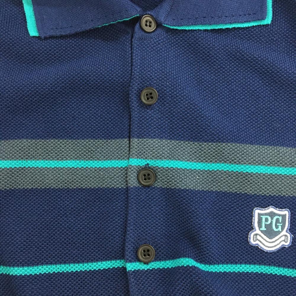 パーリーゲイツ 半袖ニットポロシャツ ネイビー×グリーン ボーダー風 メンズ 4(M) ゴルフウェア PEARLY GATES