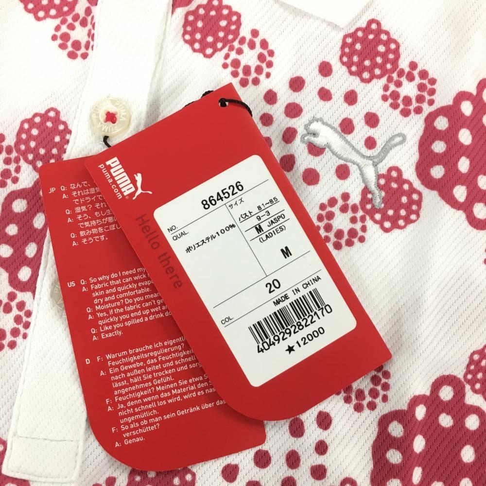 【新品】プーマ 半袖ポロシャツ ピンク×白 総柄 レディース M ゴルフウェア PUMA