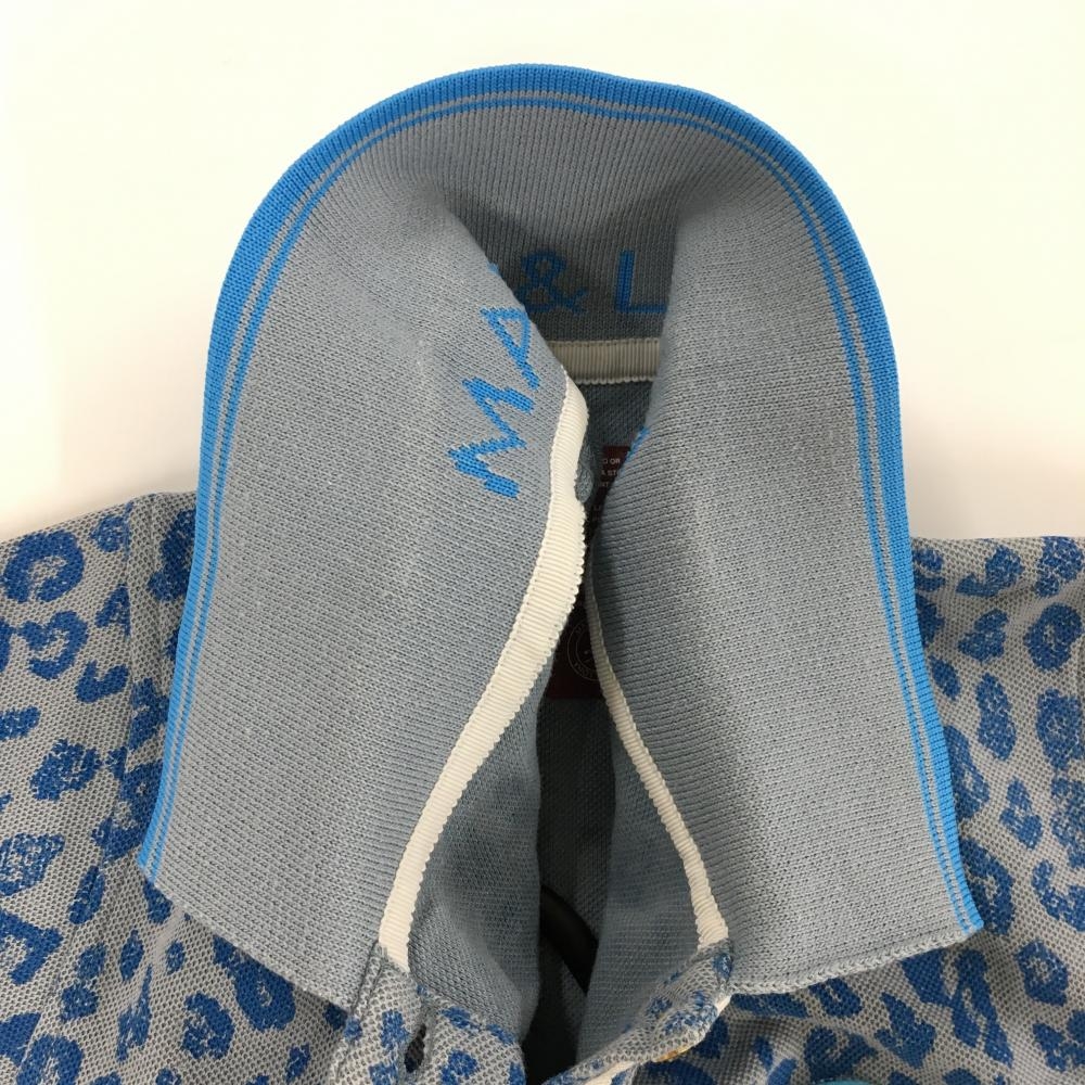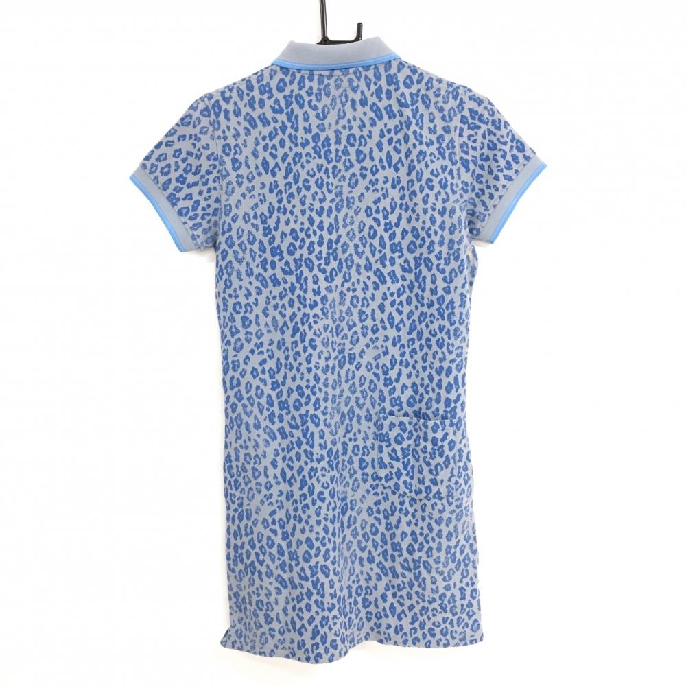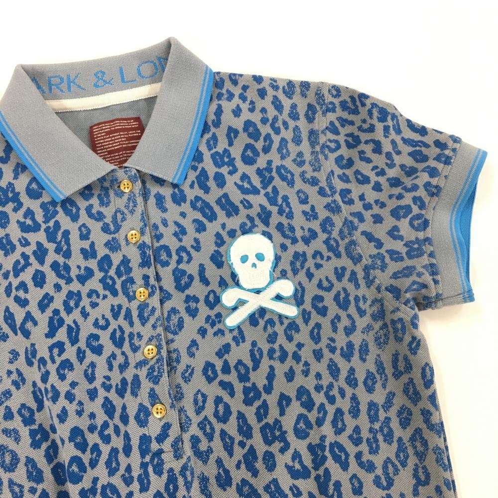 マークアンドロナ 半袖ポロワンピース グレー×ライトブルー レオパード柄 スカル レディース M ゴルフウェア MARK&LONA