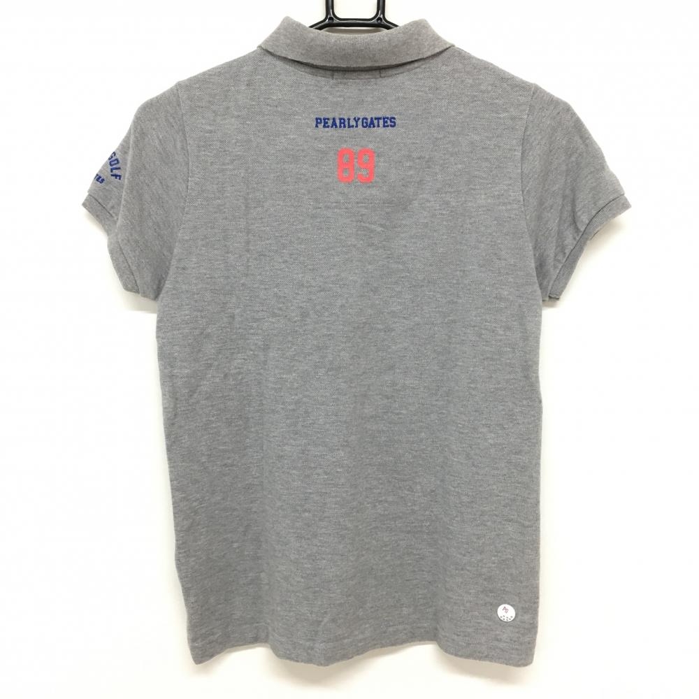 【美品】パーリーゲイツ 半袖ポロシャツ グレー×ブルー ビッグワッペン レディース 0(S) ゴルフウェア PEARLY GATES