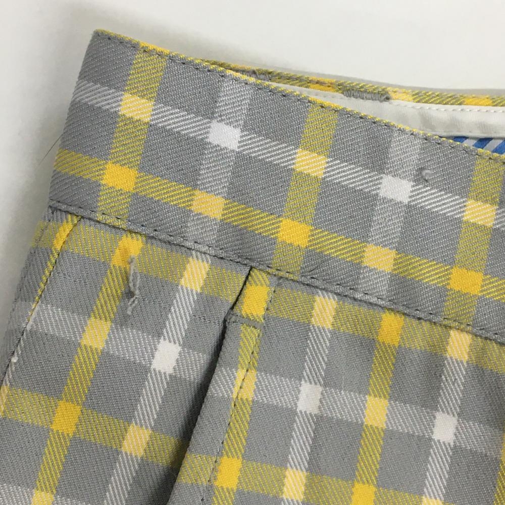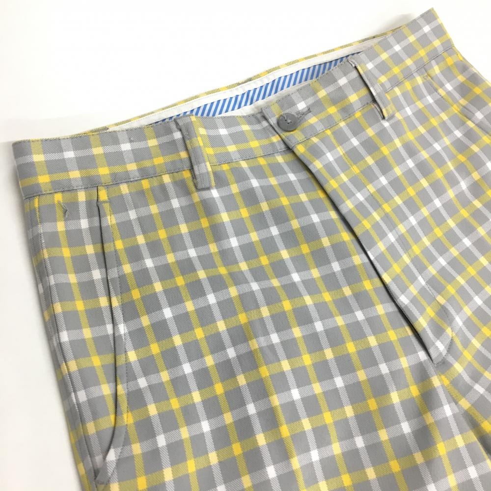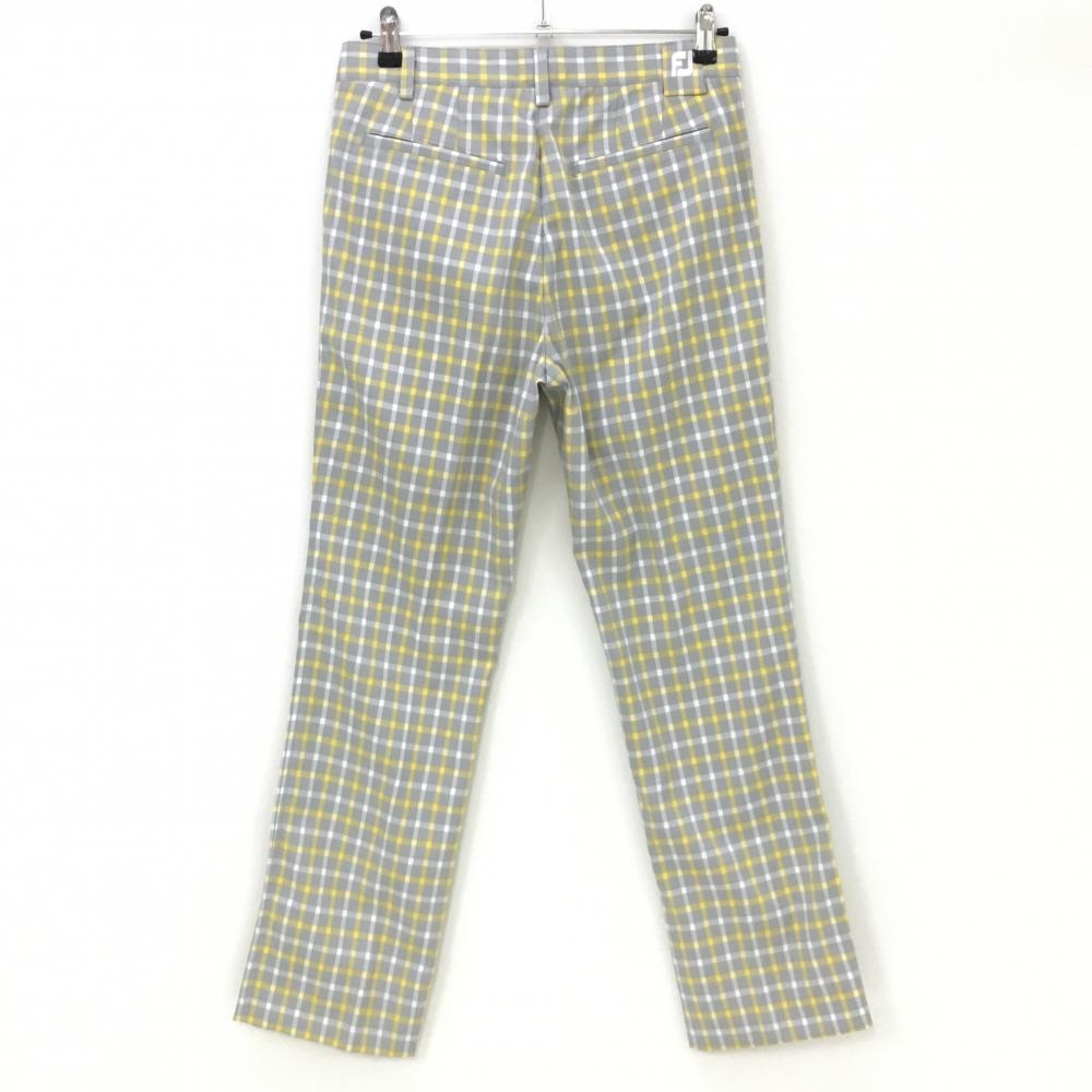 【美品】フットジョイ パンツ グレー×白×イエロー チェック ロゴ刺しゅう メンズ ゴルフウェア FootJoy