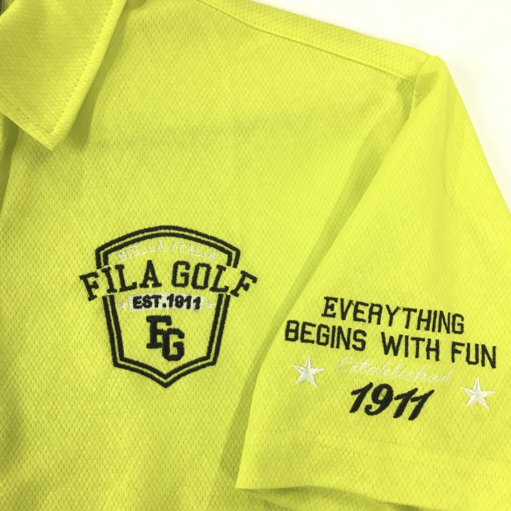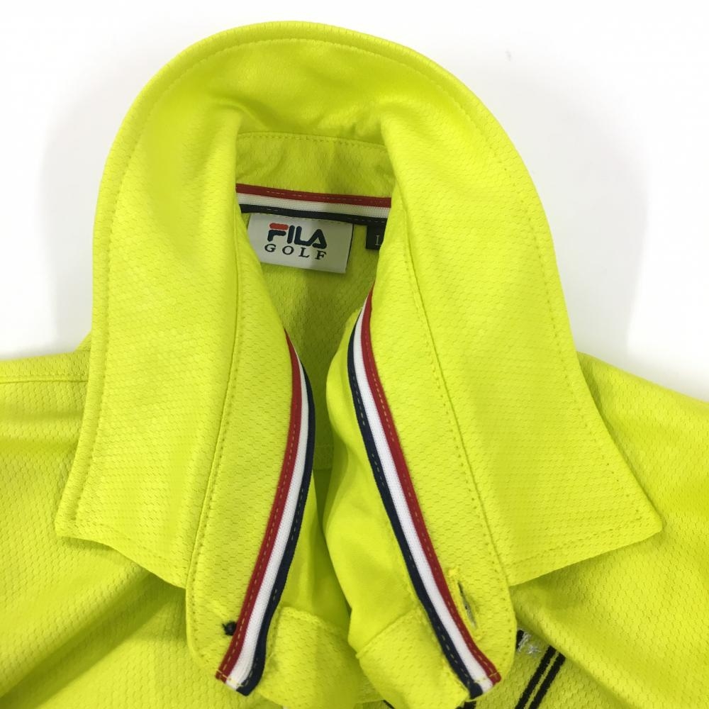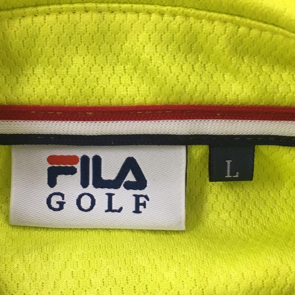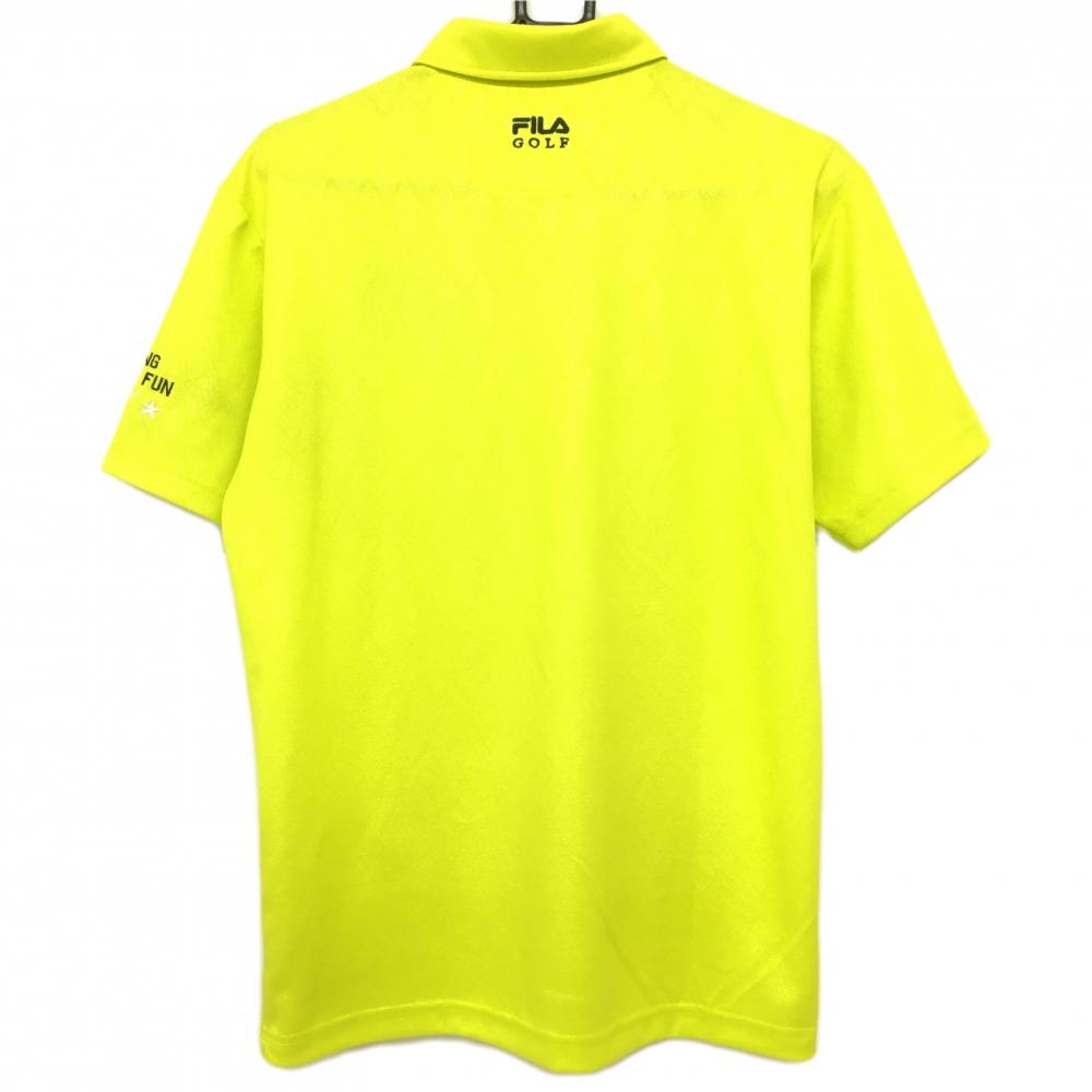 【美品】フィラゴルフ 半袖ポロシャツ ライトグリーン ダイヤ柄織生地 ロゴ刺しゅう メンズ L ゴルフウェア FILA GOLF