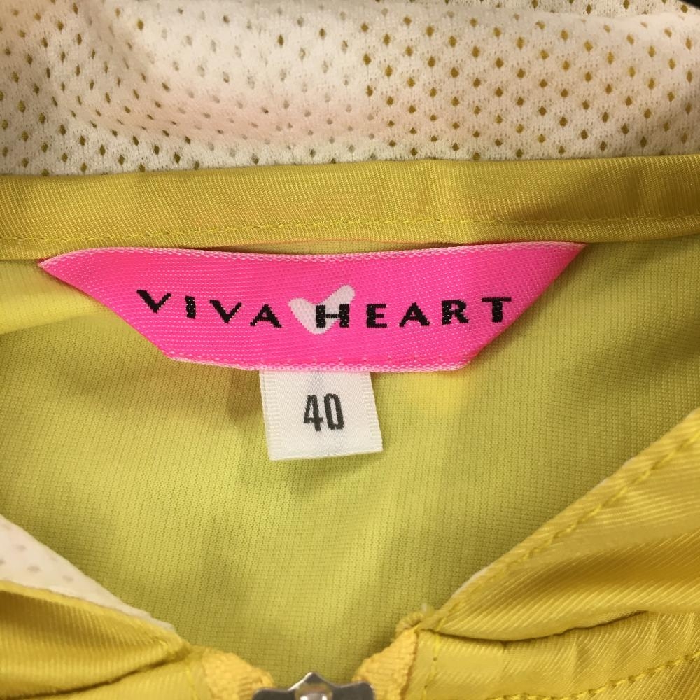 【美品】ビバハート ジップパーカー イエロー×白 一部メッシュ ハートワッペン レディース 40(M) ゴルフウェア VIVA HEART