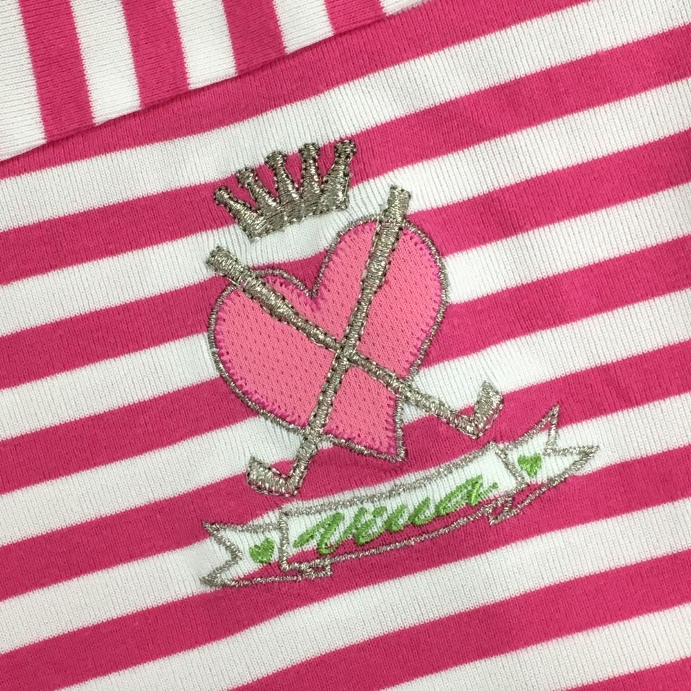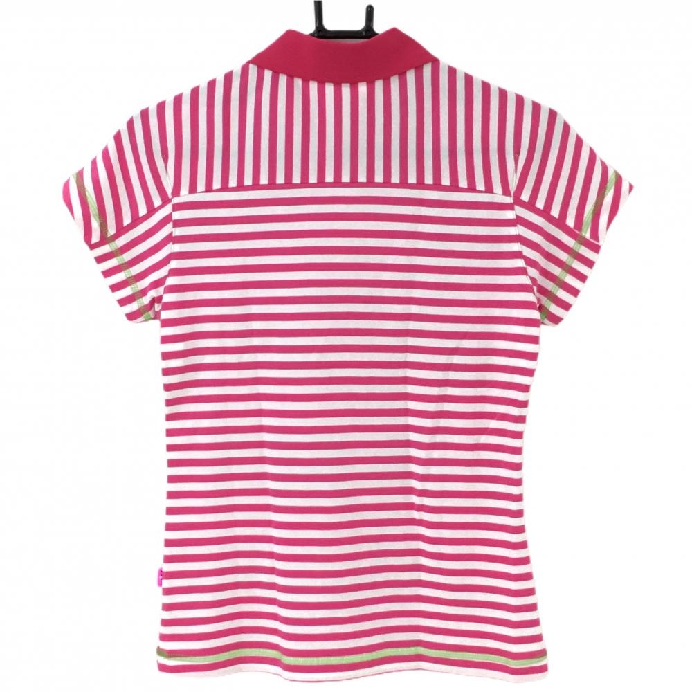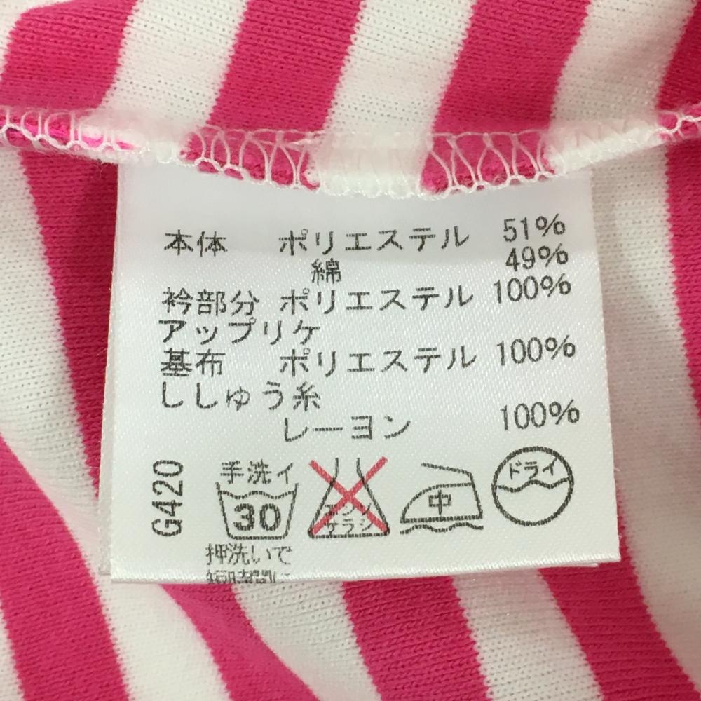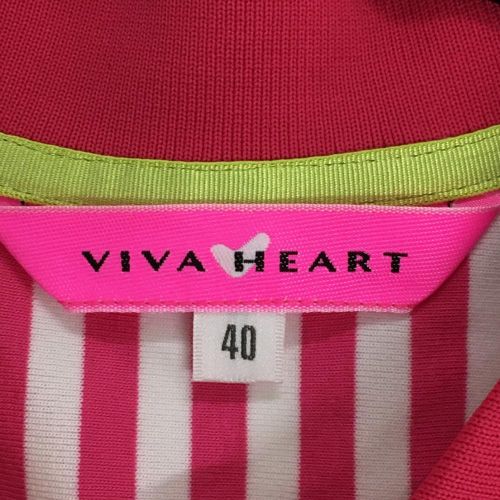 【超美品】ビバハート 半袖ポロシャツ ピンク×白 ストライプ ボーダー レディース 40(M) ゴルフウェア VIVA HEART