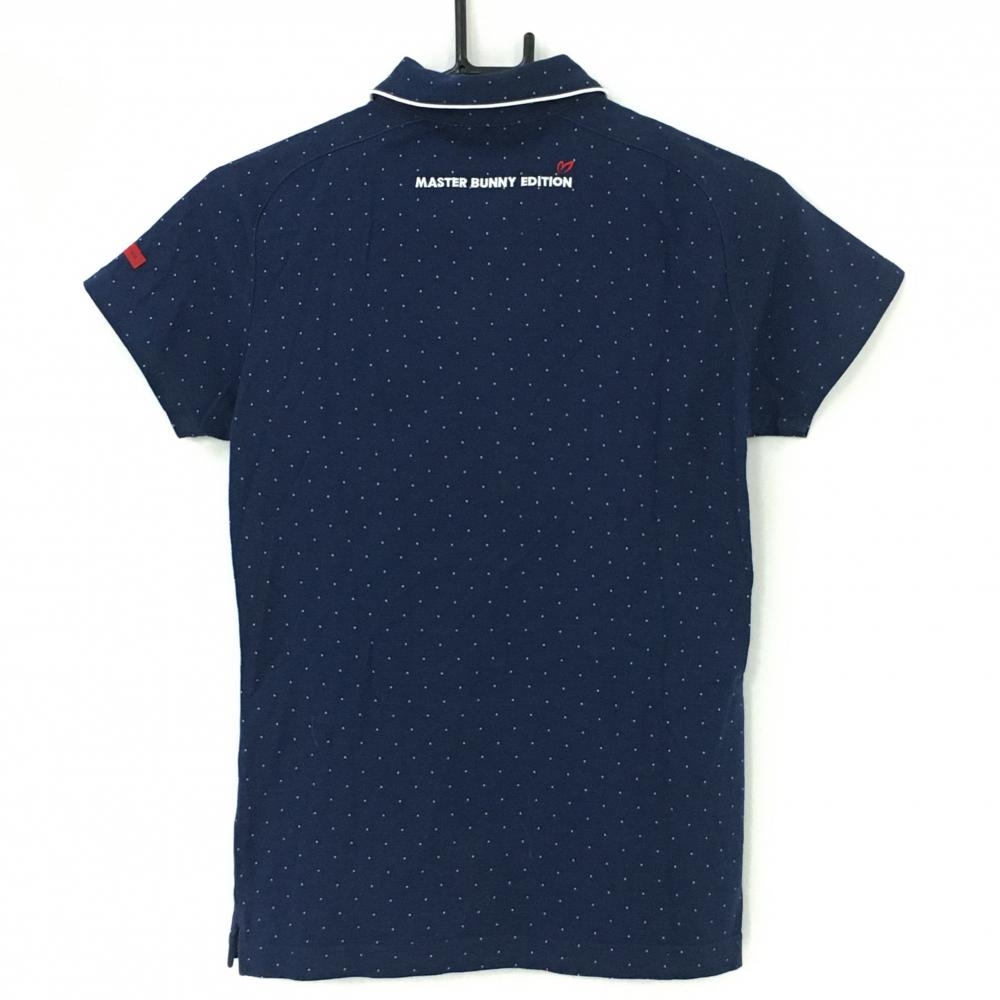 【美品】マスターバニー 半袖ポロシャツ ネイビー×白 ピンドット調 丸襟 レディース 2(L) ゴルフウェア MASTER BUNNY EDITION