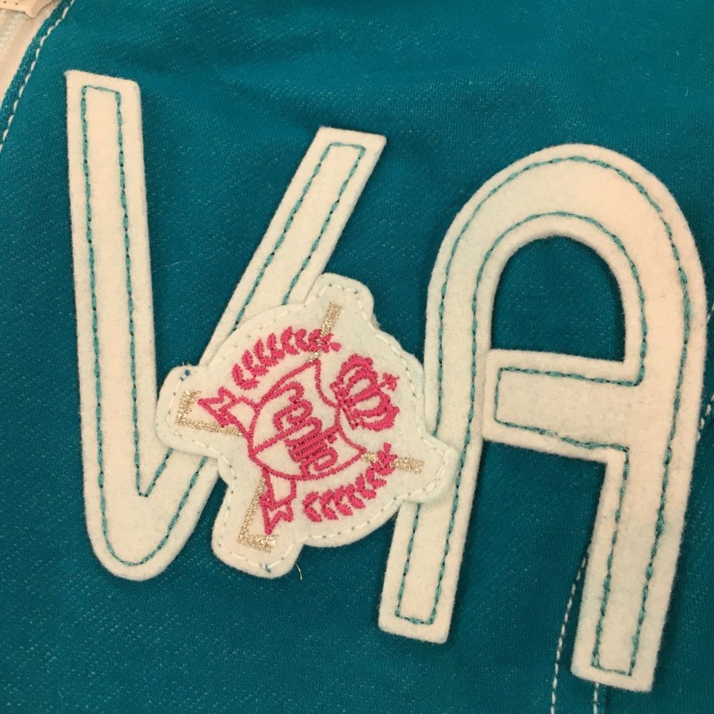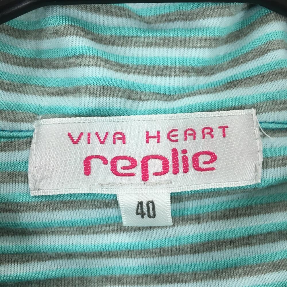 【超美品】ビバハート ジップパーカー ブルーグリーン×白 フード裏ボーダー フェルトワッペン レディース 40(M) ゴルフウェア VIVA HEART