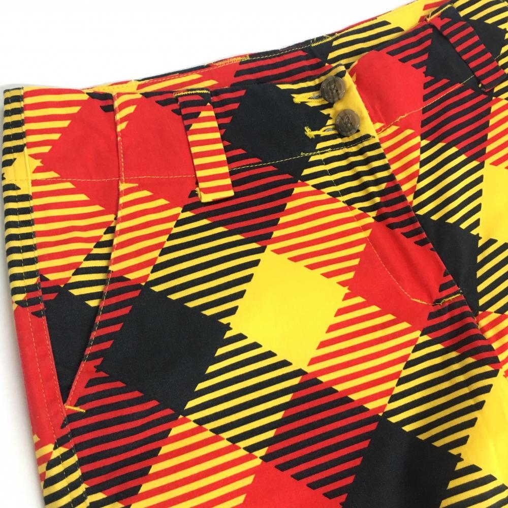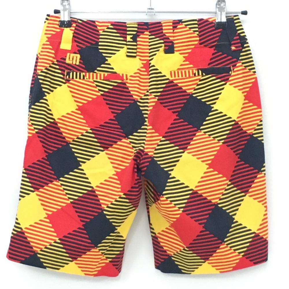 【美品】ラウドマウス ハーフパンツ イエロー×黒×レッド ボーダー・ブロック総柄 レディース US/2(L) ゴルフウェア LOUDMOUTH