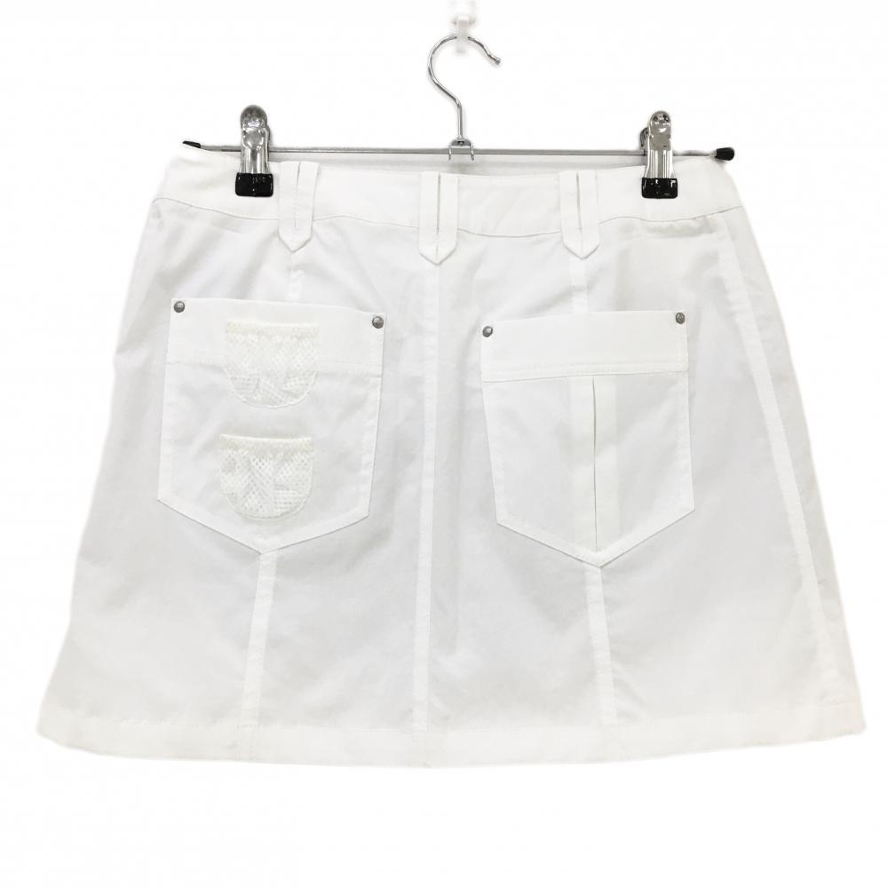 【美品】ダンスウィズドラゴン スカート 白 前面ボックスプリーツ 内側インナーパンツ レディース 2(M) ゴルフウェア Dance With Dragon