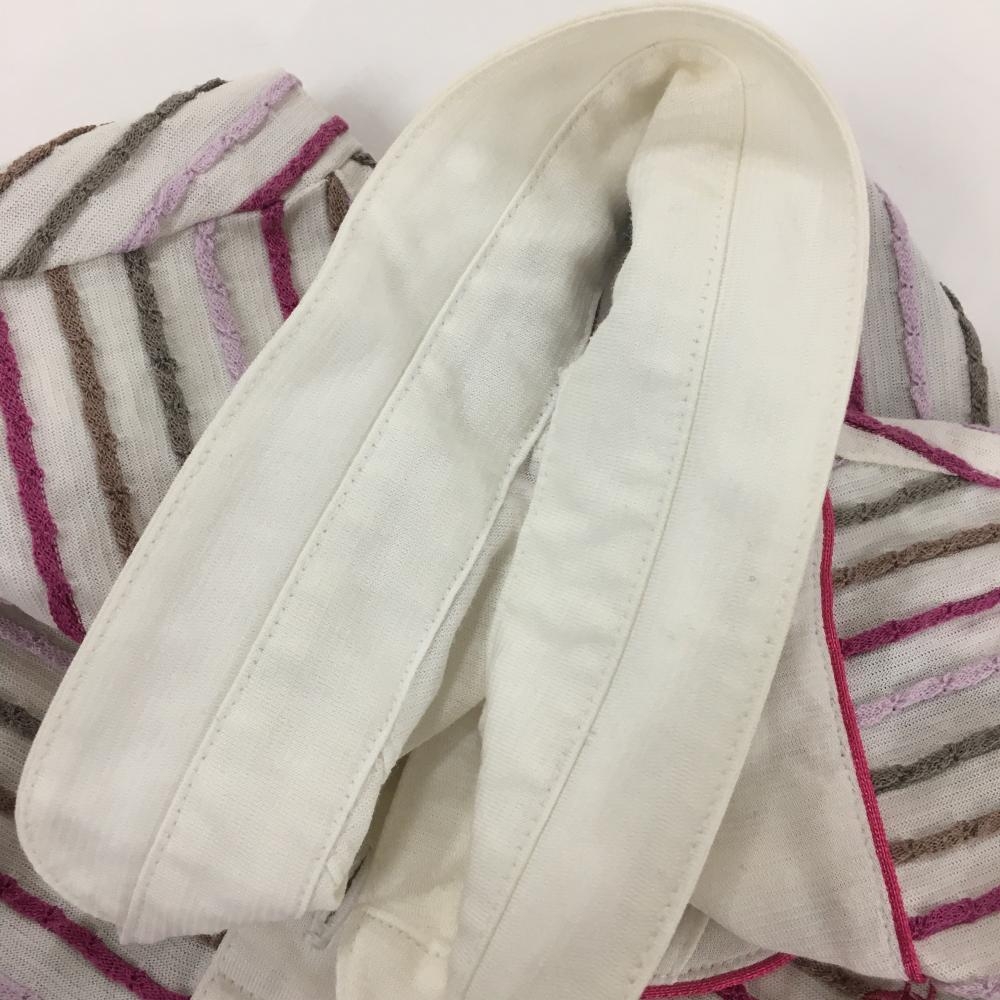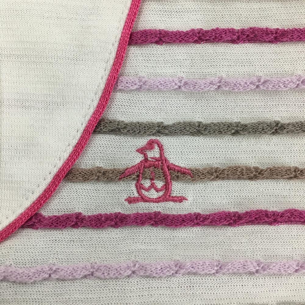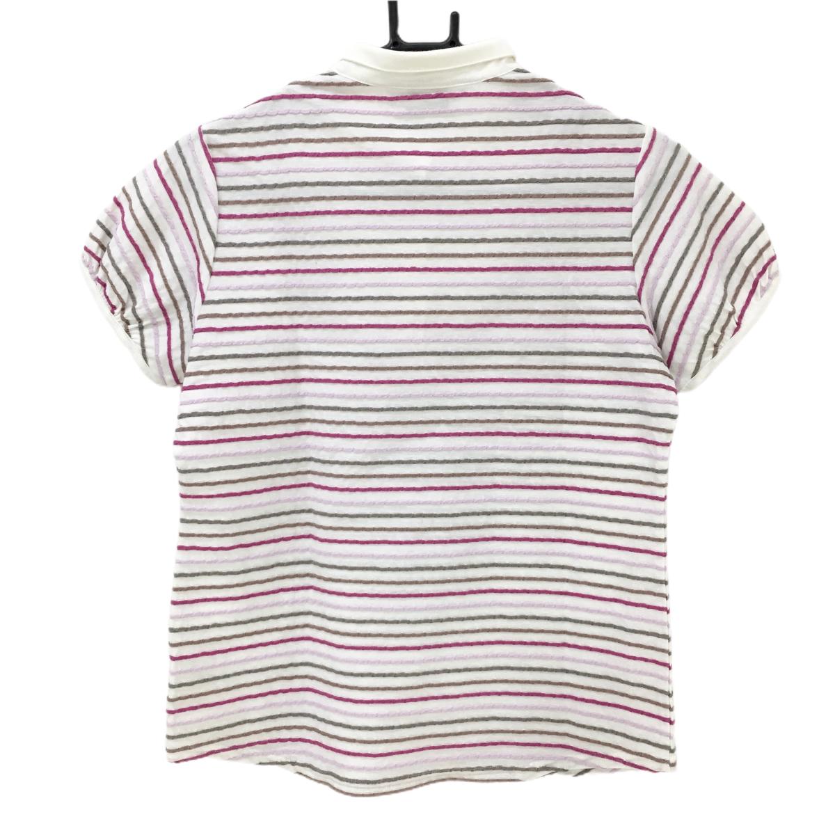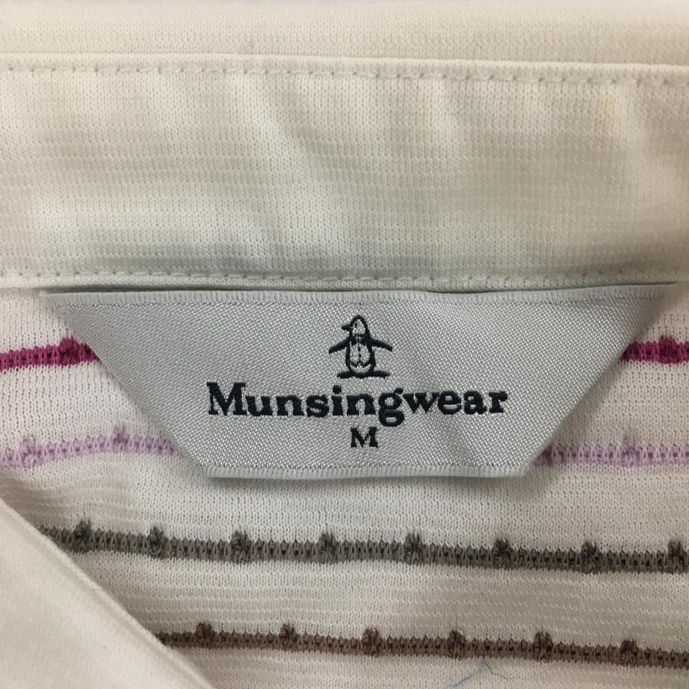 マンシングウェア 半袖ポロシャツ 白×ピンク ボーダー織生地 ロゴ刺しゅう レディース M ゴルフウェア Munsingwear
