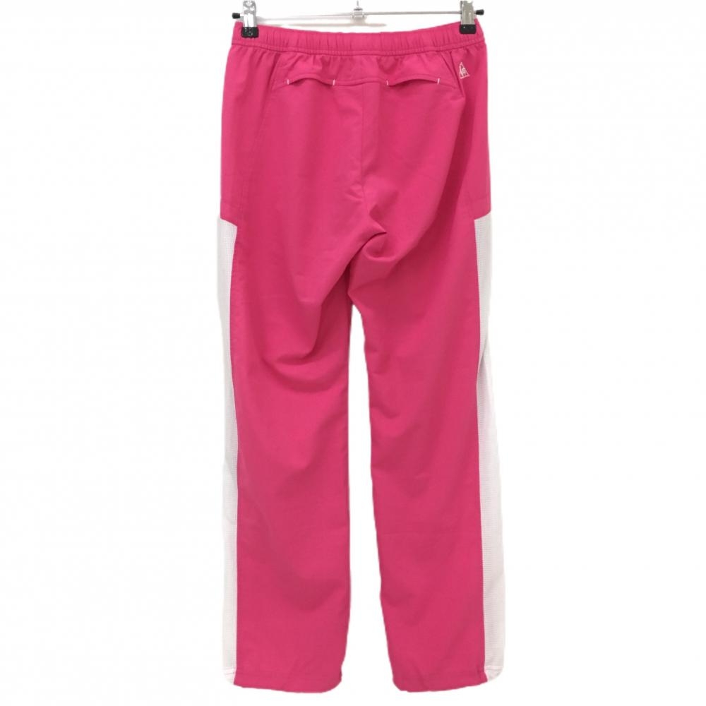 【美品】ルコック パンツ ピンク×白 サイドメッシュ ロゴ刺しゅう 裾ドローコード レディース S ゴルフウェア le coq sportif