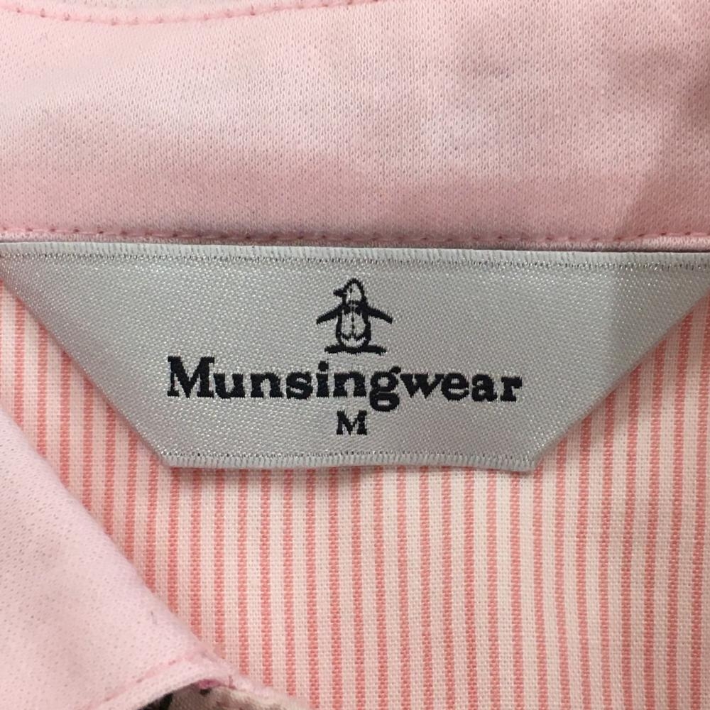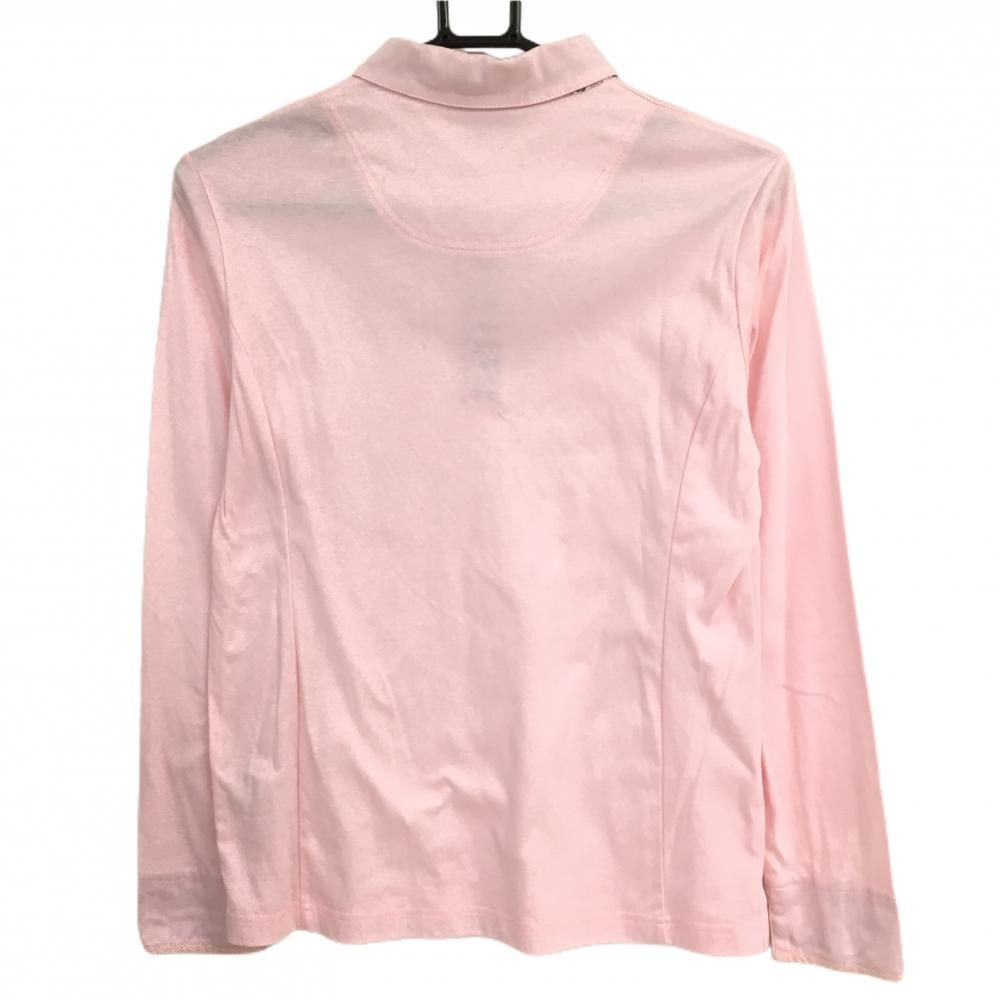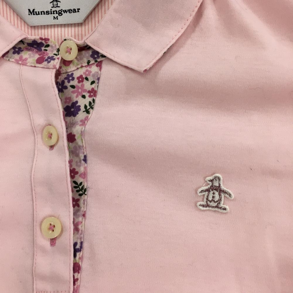 マンシングウェア 長袖ポロシャツ ライトピンク 襟裏花柄 ロゴワッペン レディース M ゴルフウェア Munsingwear