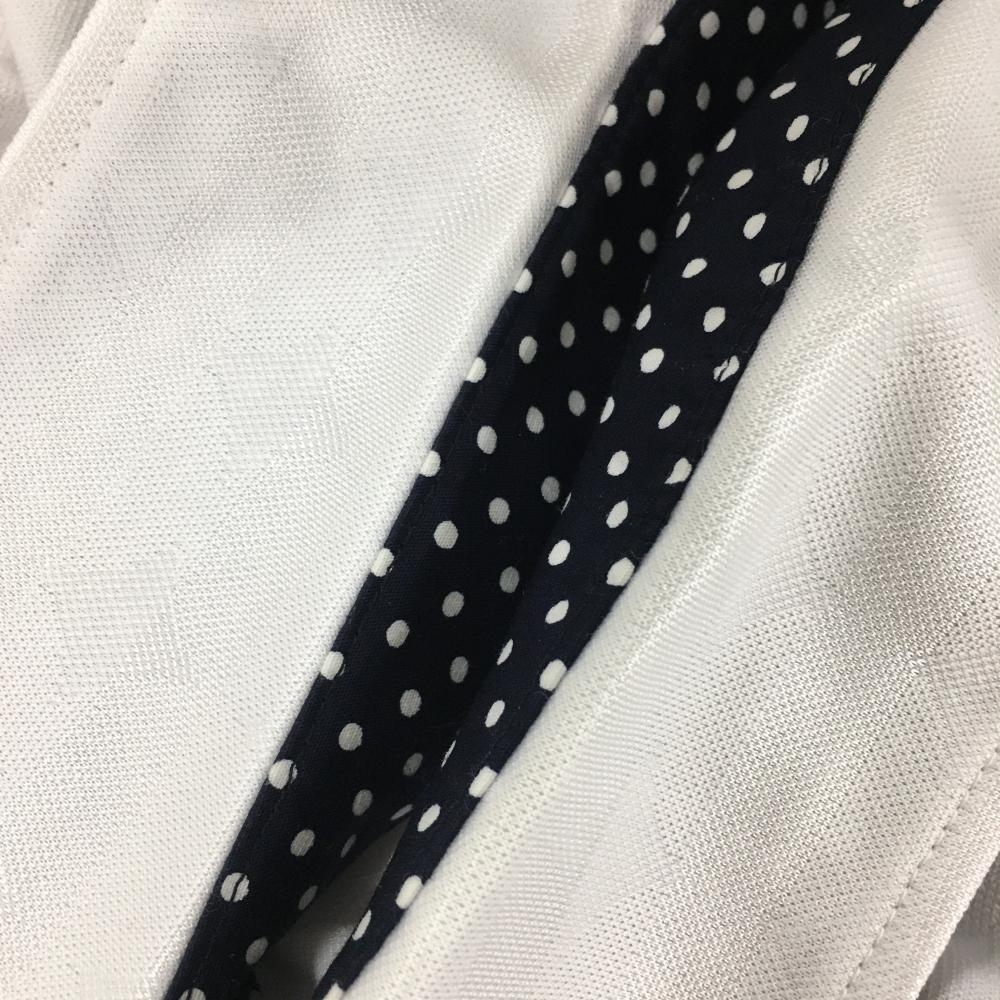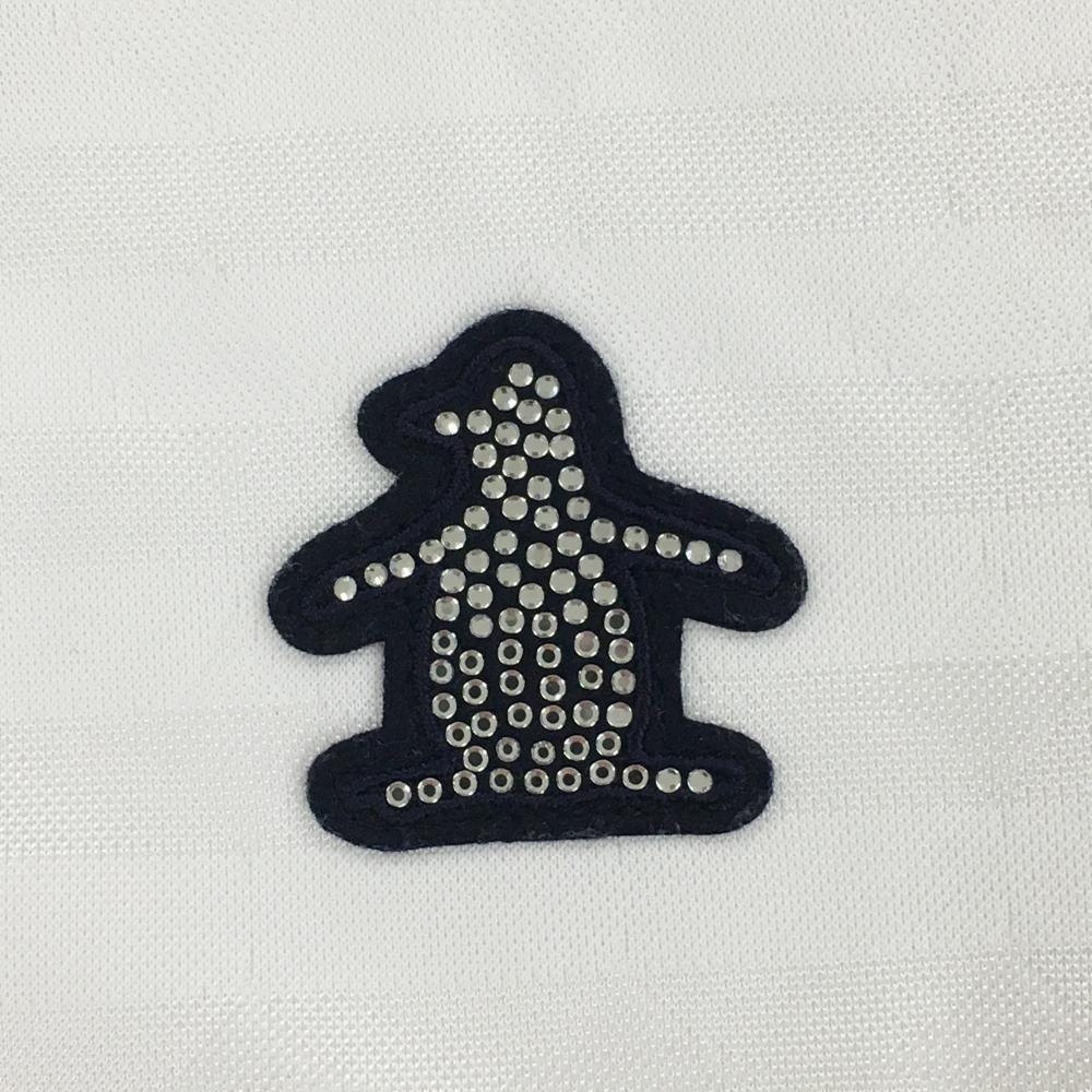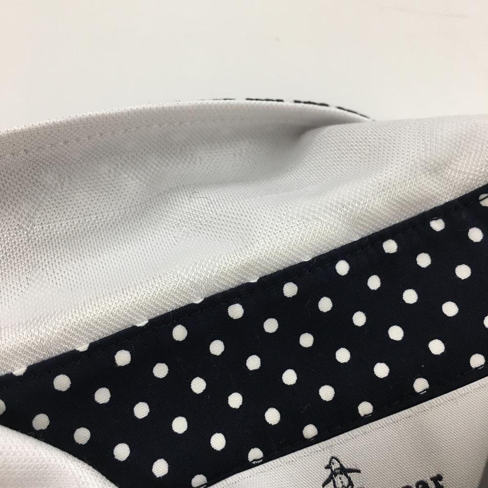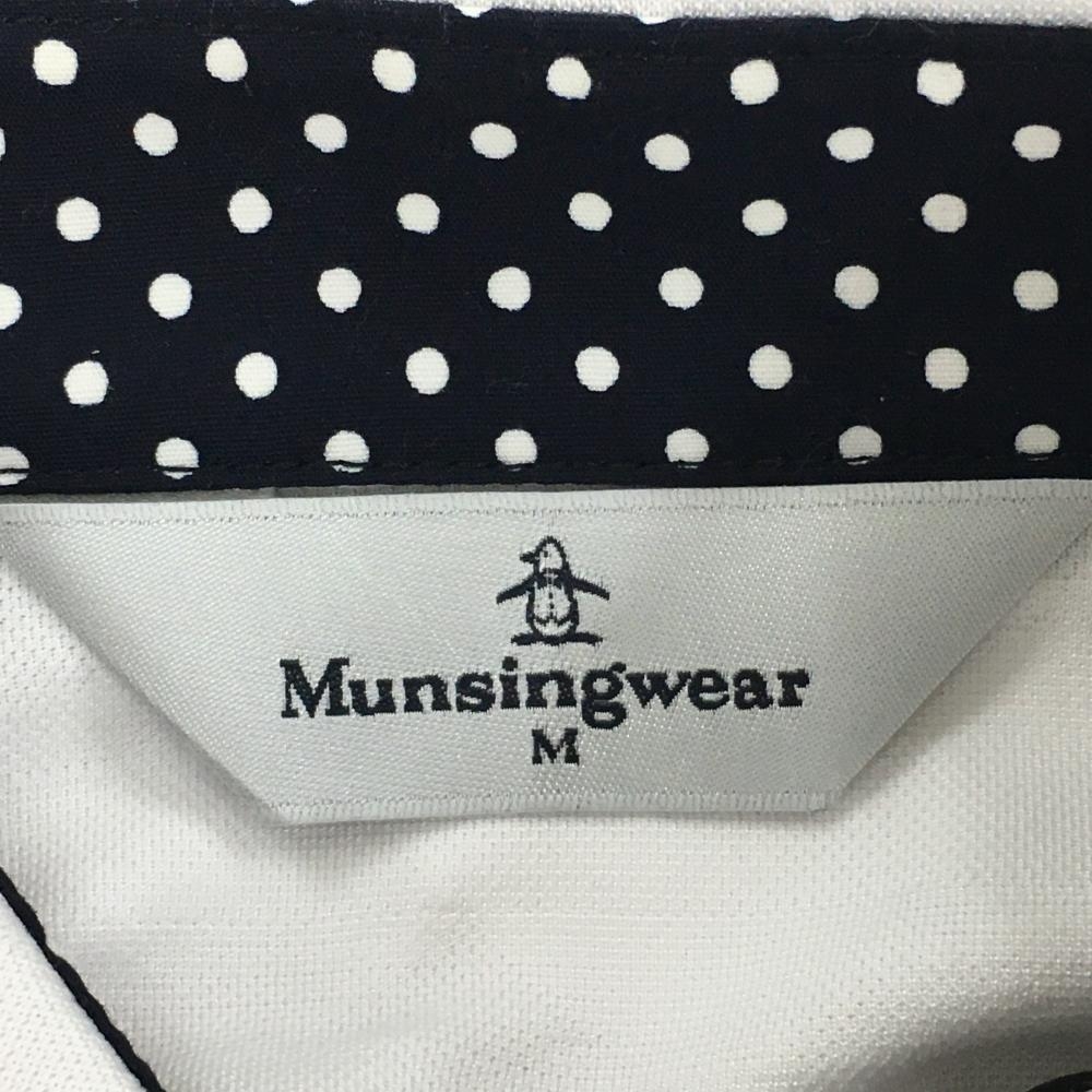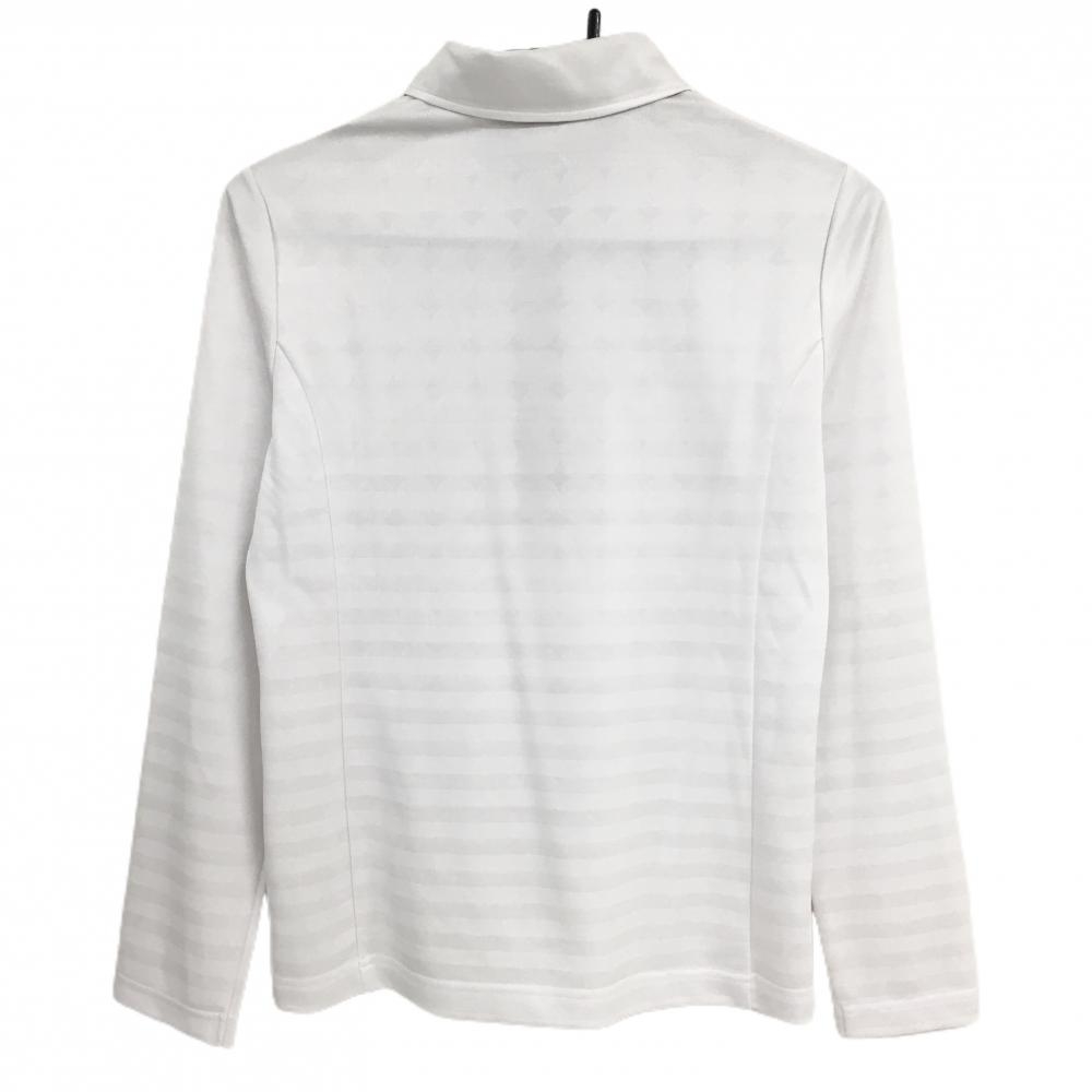 マンシングウェア 長袖ポロシャツ 白×黒 ボーダー織生地 胸元ワッペン レディース M ゴルフウェア Munsingwear
