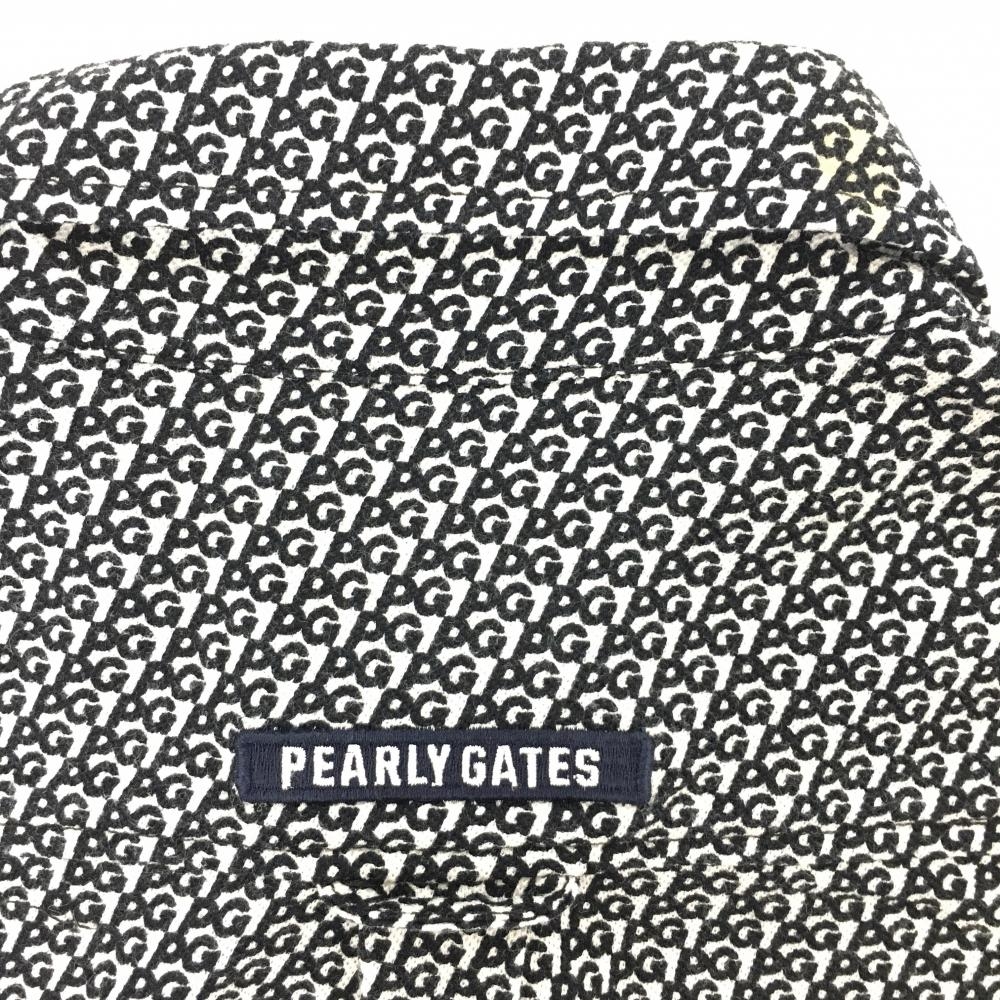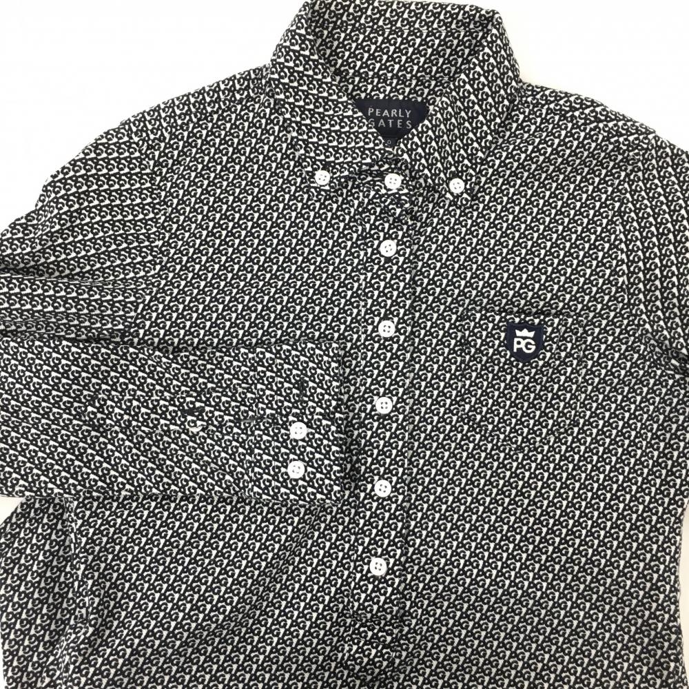 パーリーゲイツ 長袖ポロシャツ 白×ダークネイビー ロゴ総柄 ボタンダウン レディース 0(S) ゴルフウェア PEARLY GATES