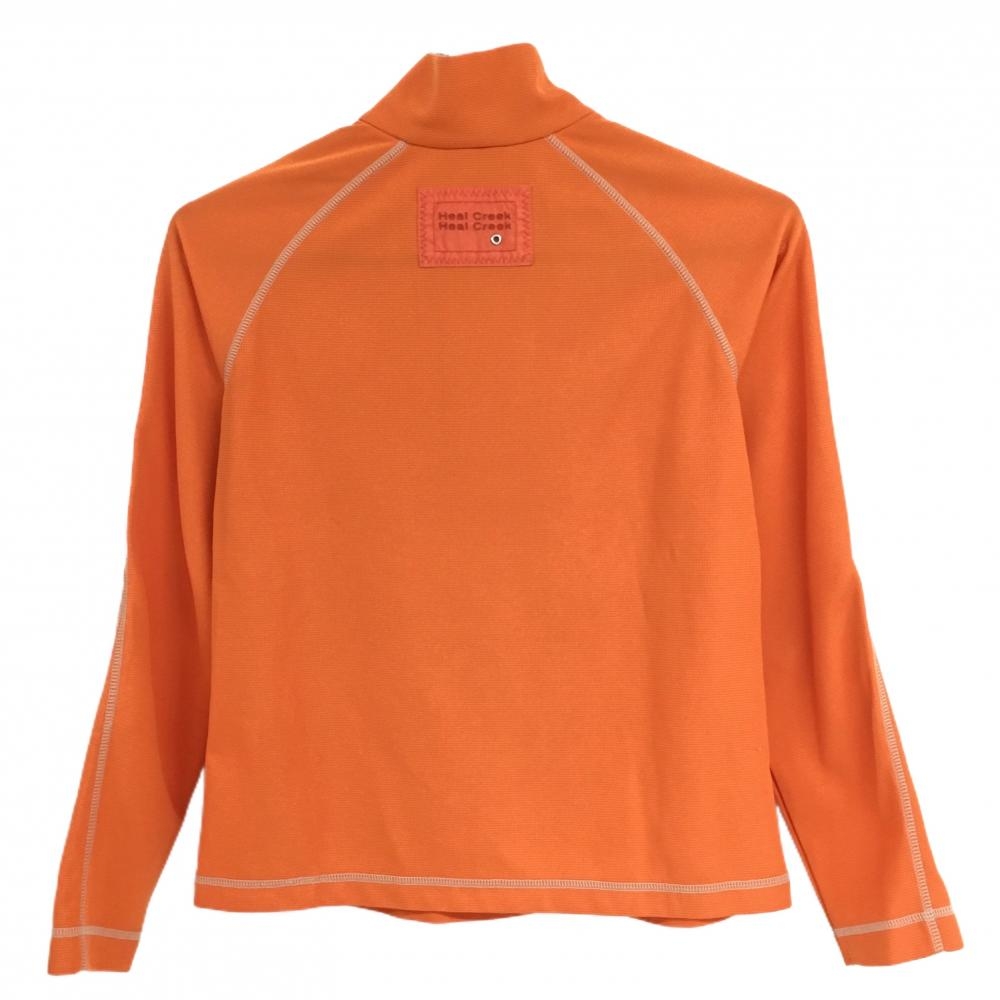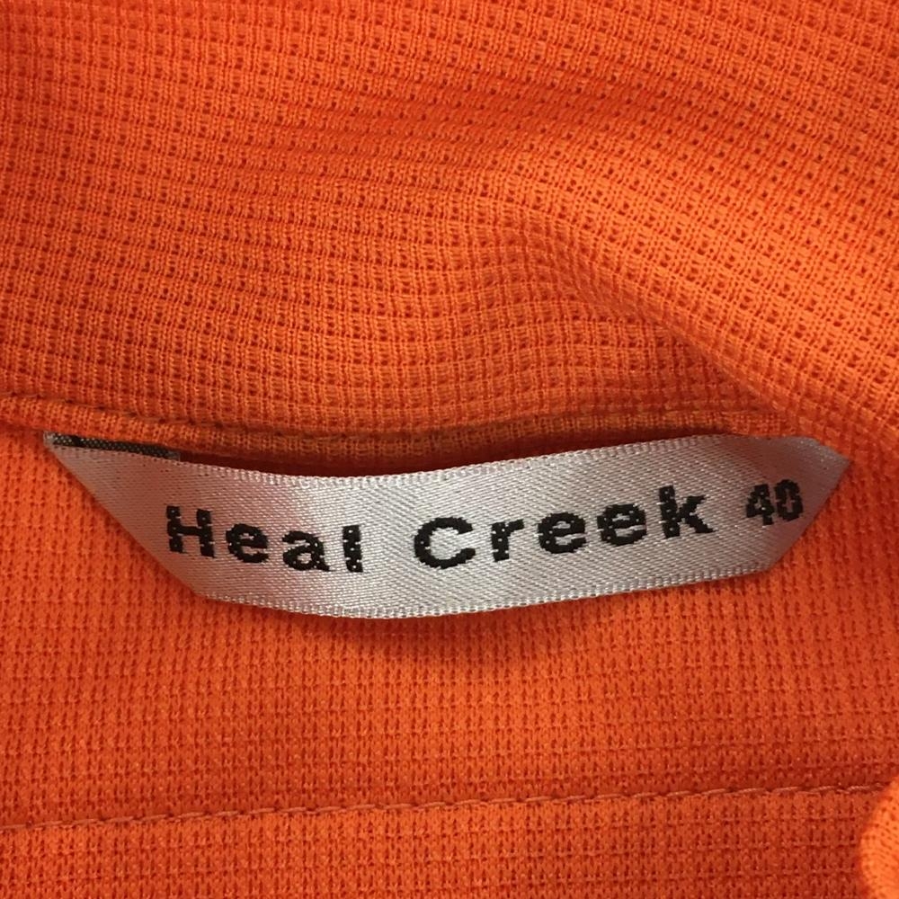 ヒールクリーク 長袖ハイネックシャツ オレンジ 織生地 ハーフジップ ネックロゴ レディース 40(M) ゴルフウェア Heal Creek